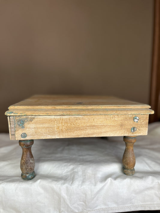 Antique Vintage Traces Of Green Paint Tuffet Footstool Riser Home Decor