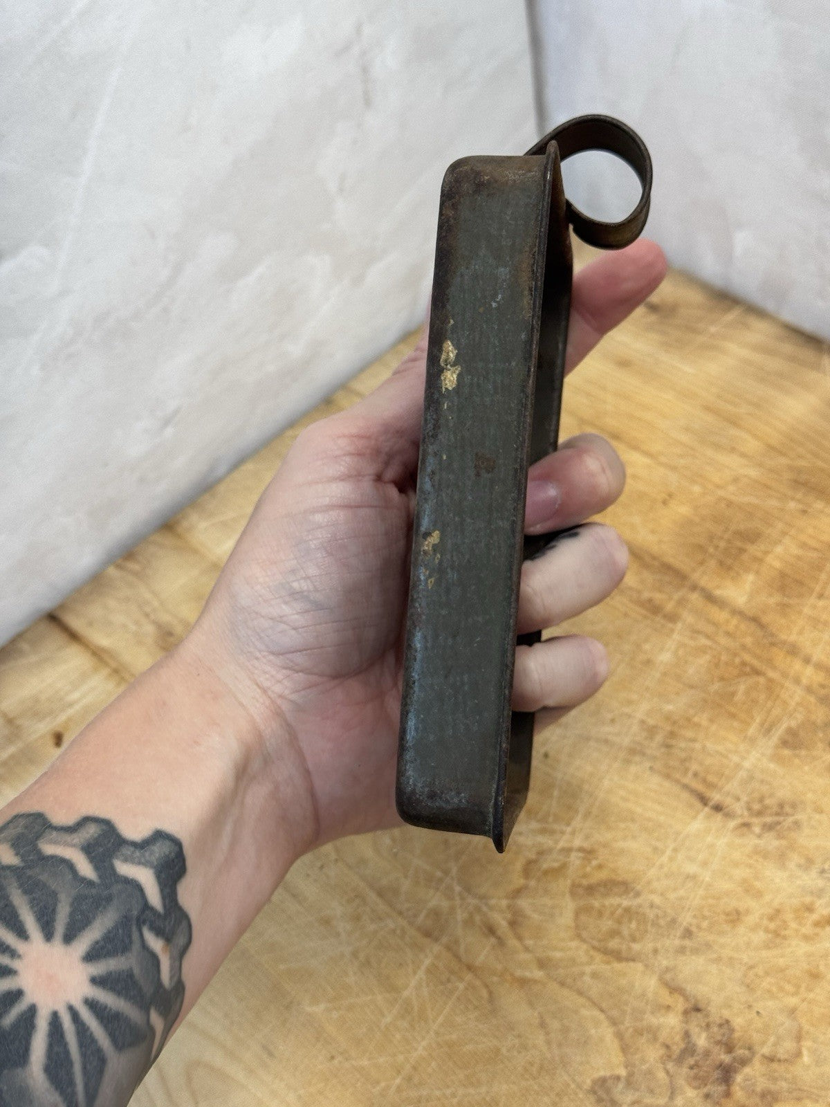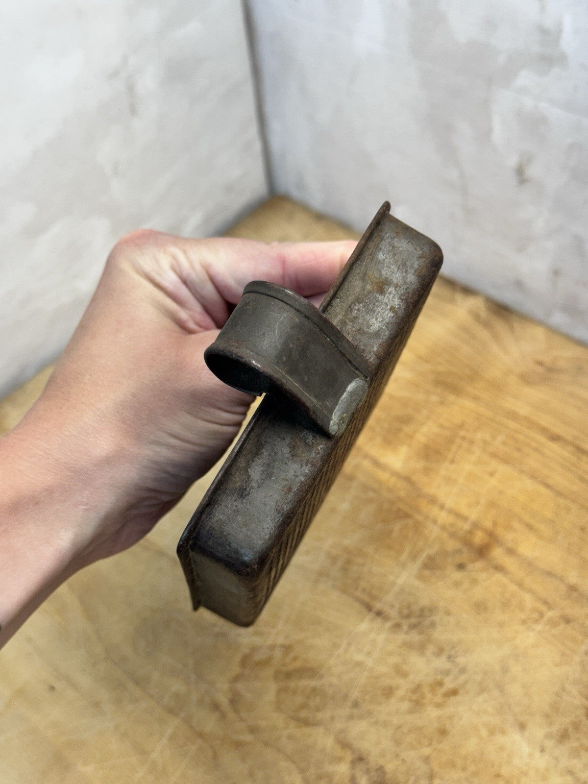 The Antique Early Tin Strainer Square is a rare and unique kitchen tool that adds a touch of vintage charm to any collection. This square-shaped strainer is made of durable tin, making it both functional and decorative. Perfect for filtering and straining various ingredients in the kitchen, this antique piece is a functional and stylish addition to any kitchen or collector's display.