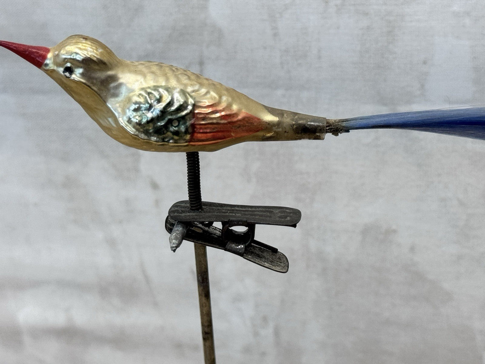 The Antique Glass Bird Clip On Ornament is a unique and decorative addition to any holiday or seasonal ornament collection. Made of glass, this ornament features a beautiful bird design that can be easily clipped onto a Christmas tree or other decorative display. With a vintage feel and intricate details, this ornament adds a touch of nostalgia and charm to any holiday decor.