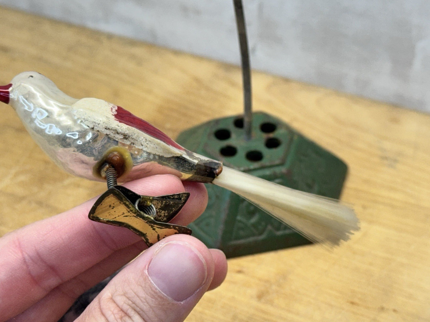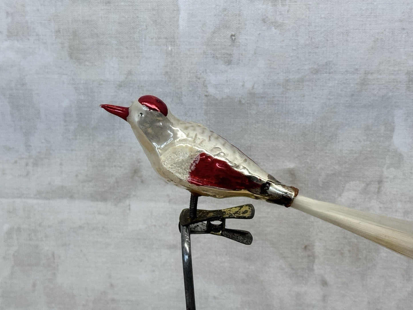The Antique Glass Clip On Bird Ornament is a charming addition to any ornament collection. Made of glass, this ornament features a delicate bird design that can be easily clipped onto a Christmas tree or any other decoration. Its vintage aesthetic adds a touch of nostalgia to the holiday season, making it a unique and special collectible for ornament enthusiasts.