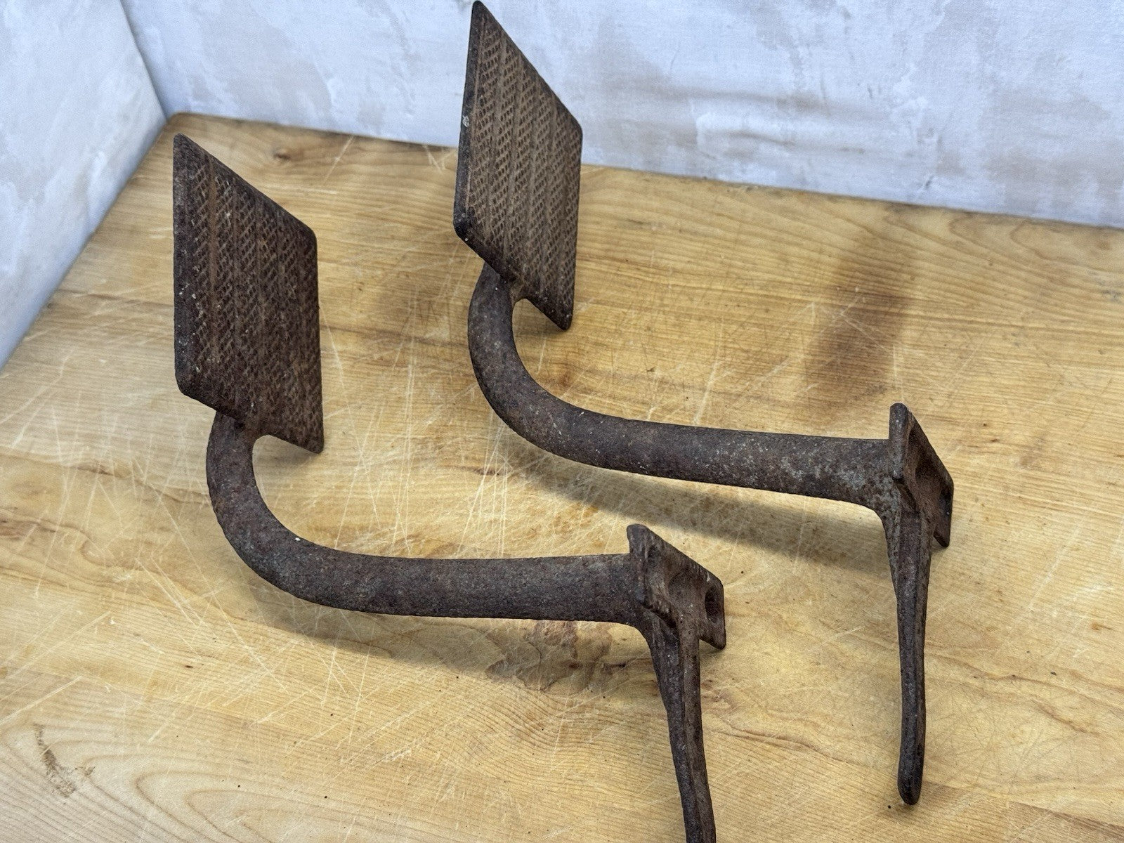 The Antique Horse Buggy Carriage Steps are original and made of cast iron, adding a touch of history and authenticity to any antique or primitive decor. These steps would have been used on horse-drawn carriages in the past, providing a unique and functional piece for any collector or enthusiast of vintage transportation. The sturdy cast iron material ensures durability and longevity, making these steps a valuable and timeless addition to any collection.