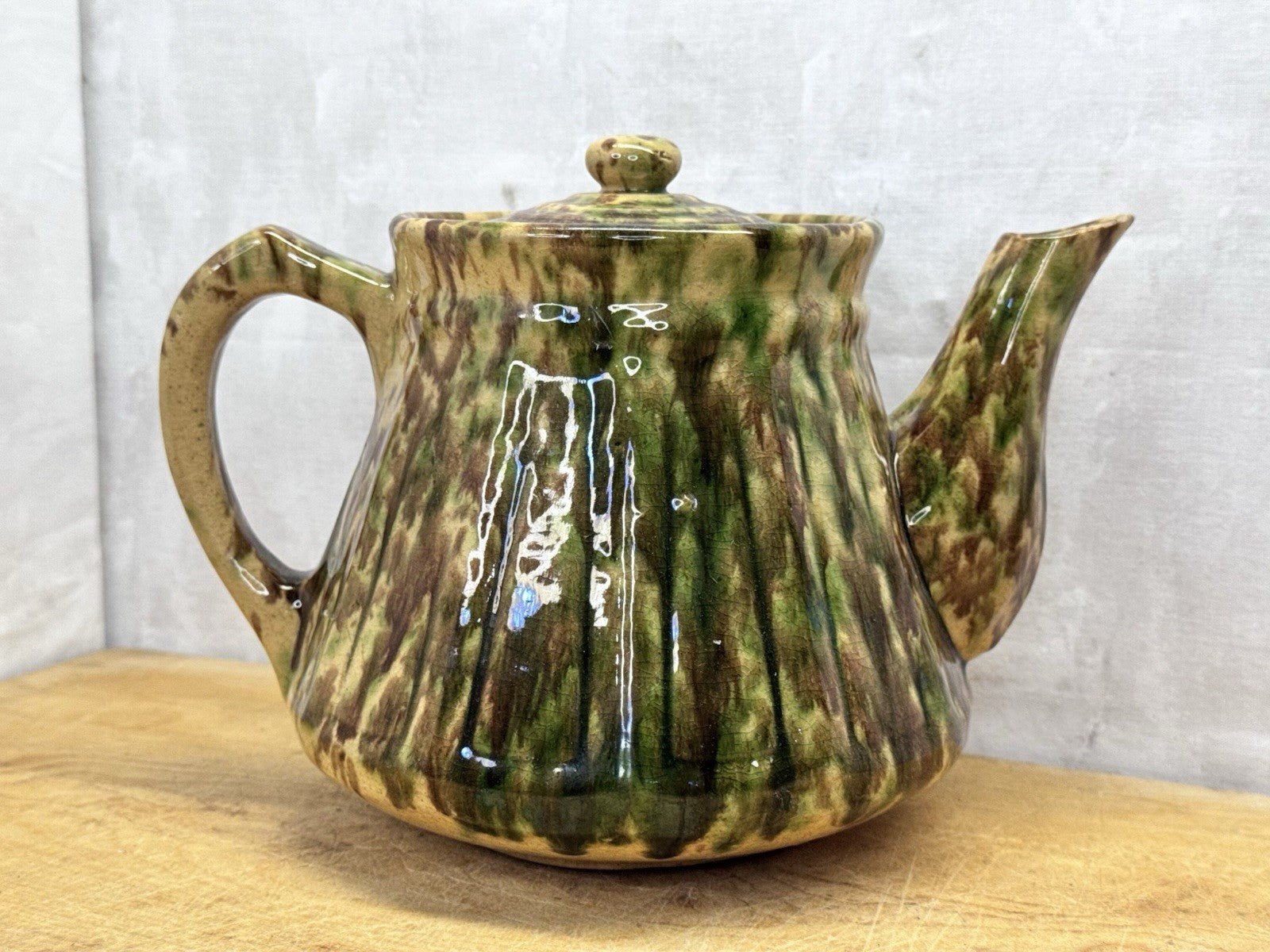 Antique Yellow Ware Spongeware Tea Pot #1148