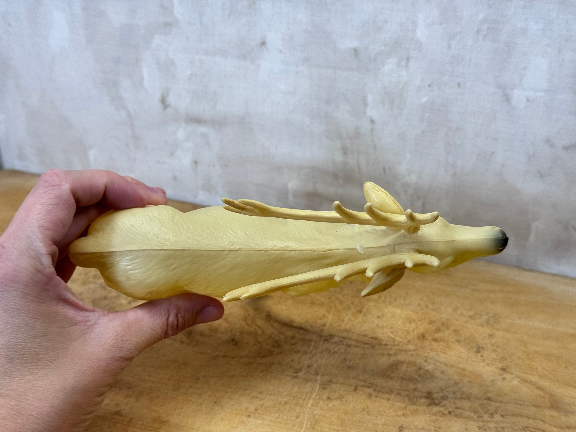 This vintage Celluloid Reindeer is marked with "Occupied Japan" on its belly, indicating its history and rarity. As a collectible, it holds historical and cultural value for avid collectors.