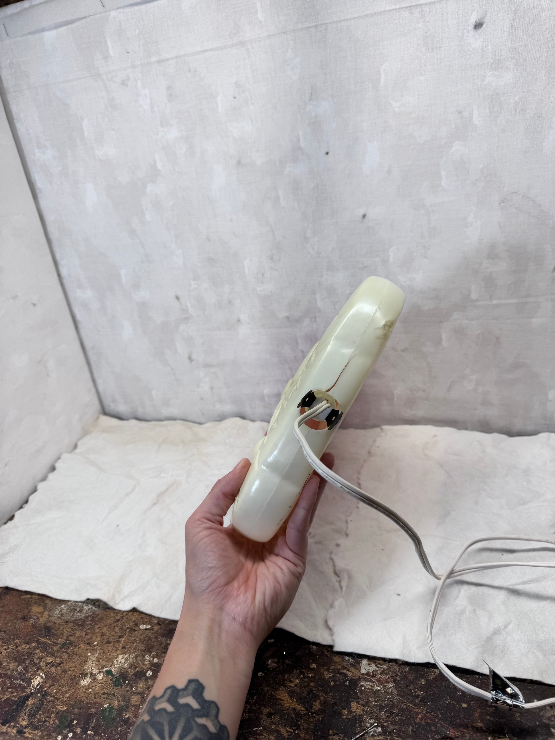 This vintage Christmas blow mold features a double sided light-up Santa face, perfect for adding a festive touch to your holiday decor. Crafted with expert precision, this piece is sure to delight and bring joy to all who see it. Make your home merry and bright with this delightful decoration.