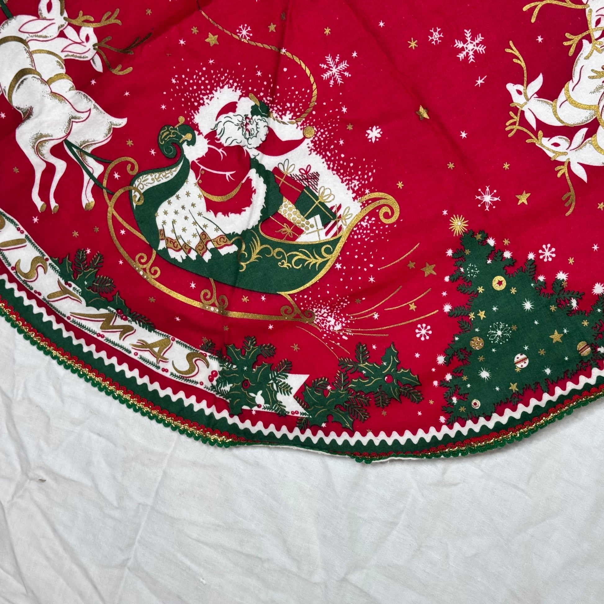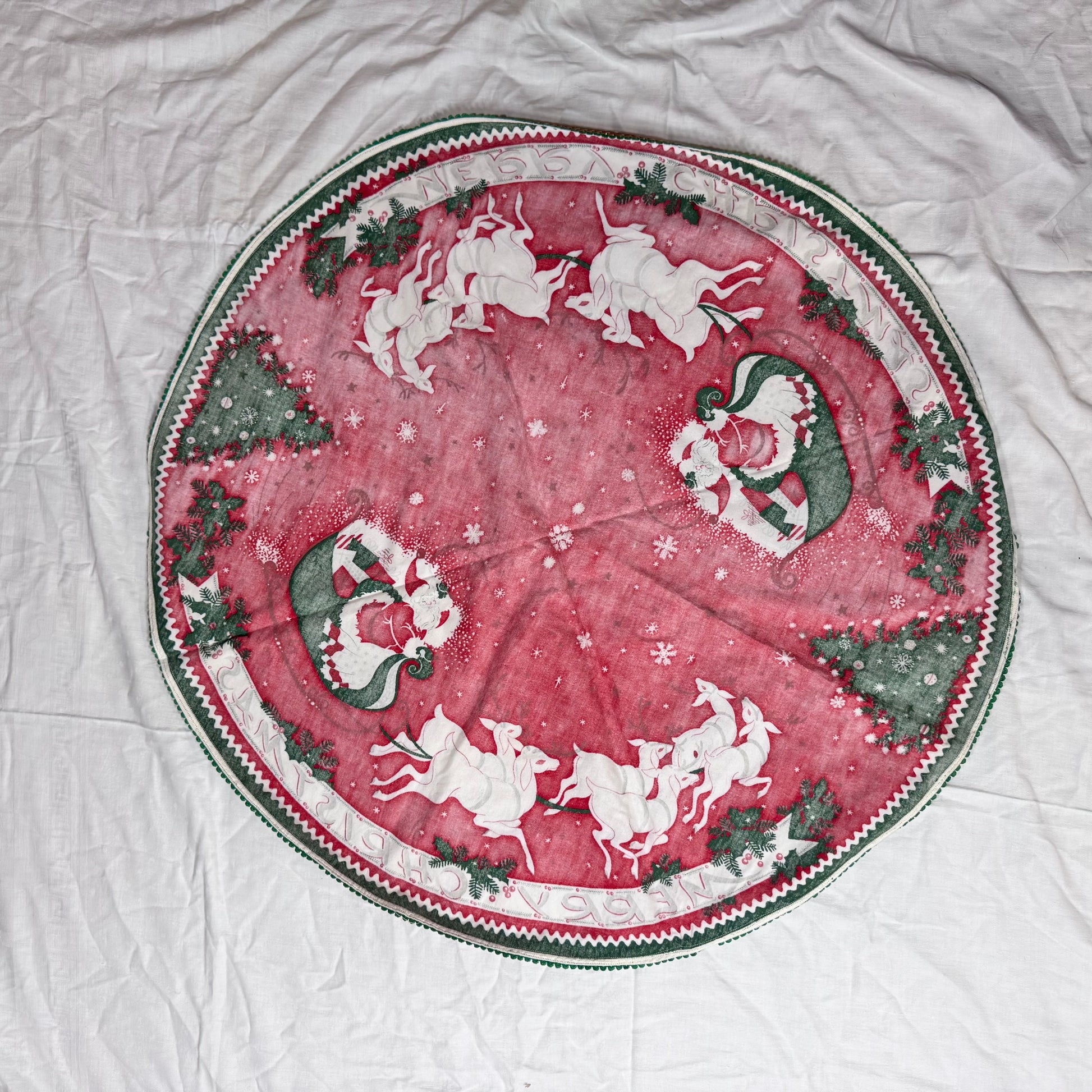 Christmas Round Tablecloth Santa Sleigh Vintage #2193