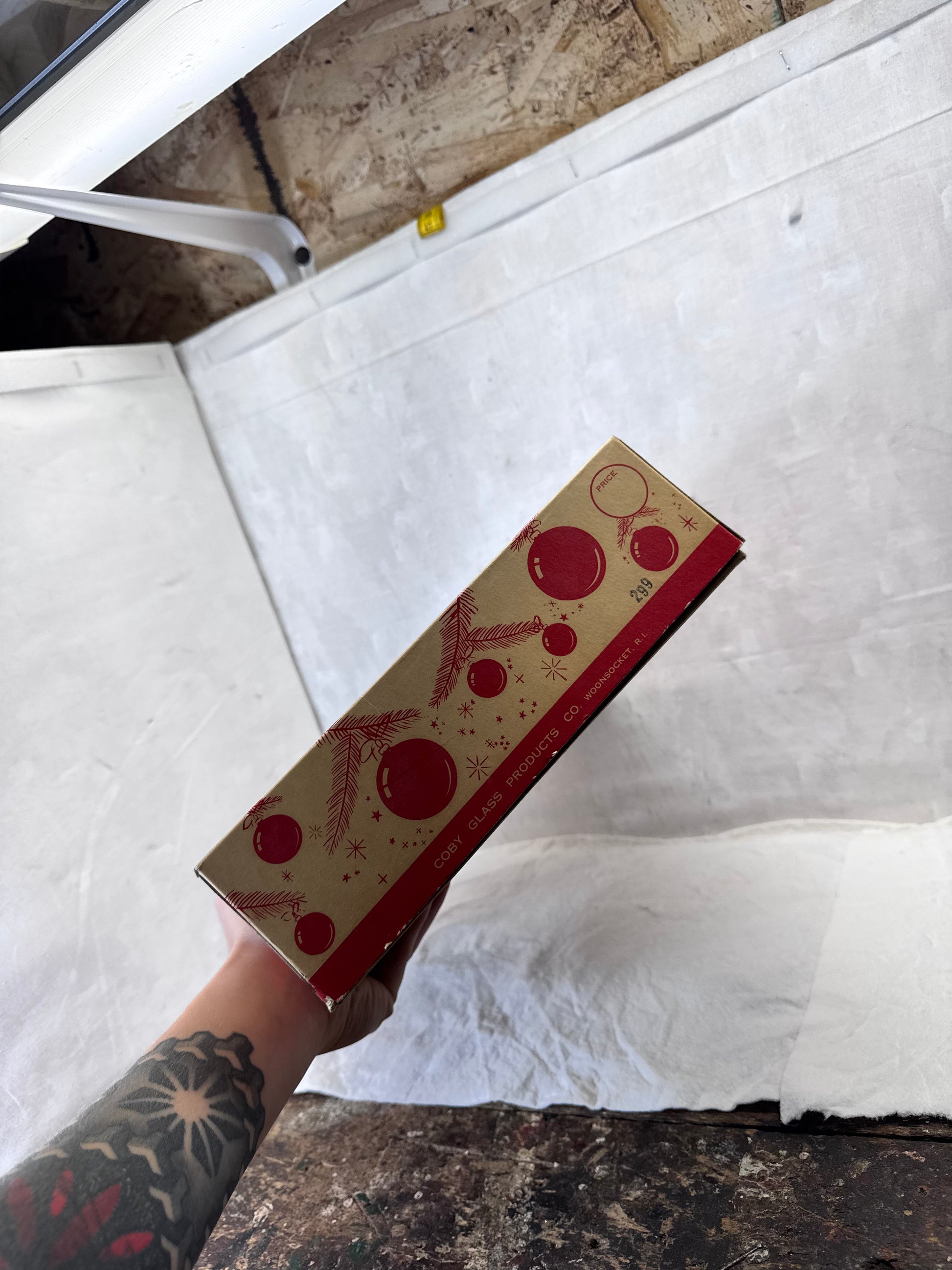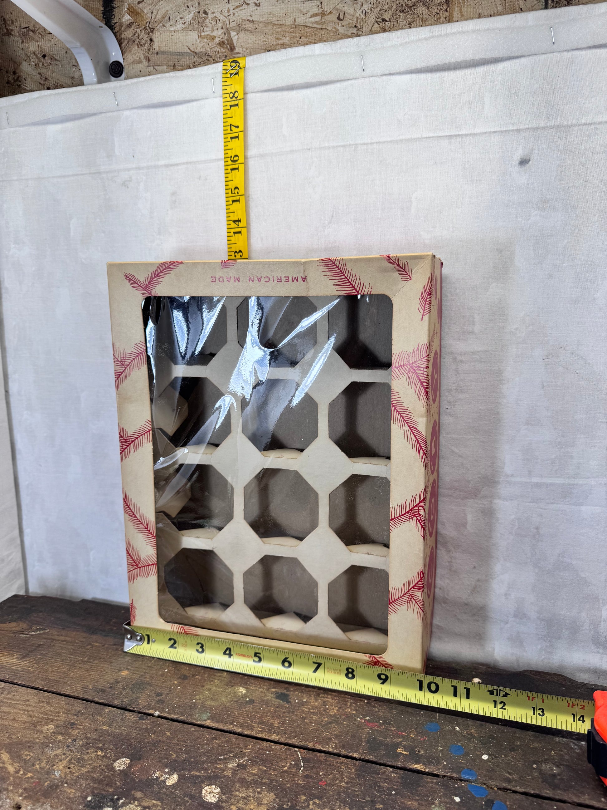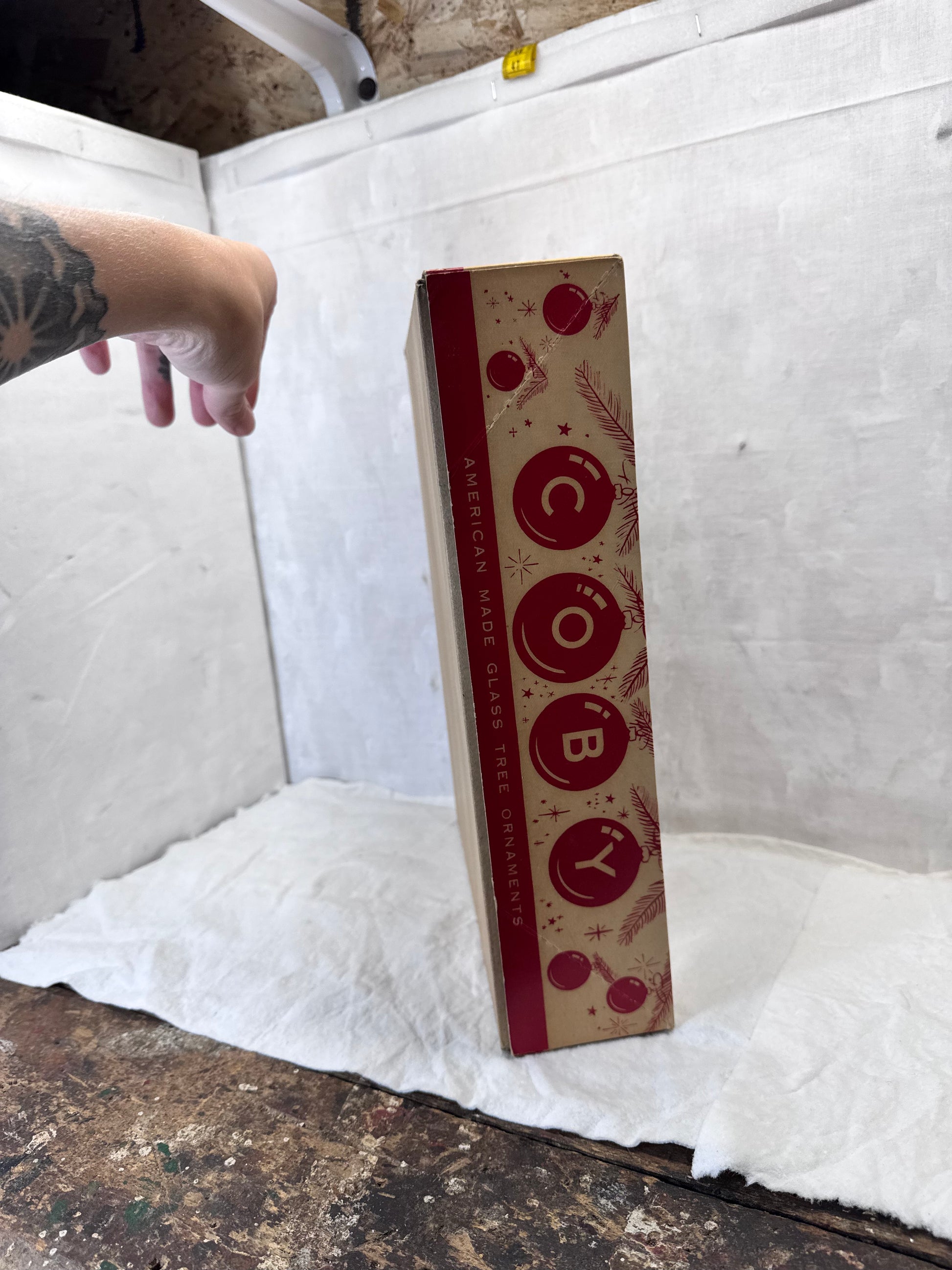 Effortlessly store and protect your precious Christmas ornaments with the vintage Coby Christmas Ornament Box. Its sturdy, empty design makes it perfect for organizing and storing your holiday decorations. Experience ease and convenience when packing away your ornaments with this timeless box.