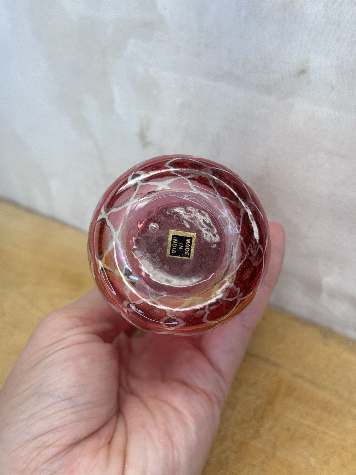 This vintage Crystal Perfume India Bottle is a decorative piece that exudes elegance and charm. Handcrafted in India, this bottle showcases intricate designs and craftsmanship. Perfect for collectors of vanity items or those who appreciate unique and exotic pieces, this perfume bottle adds a touch of sophistication to any space. Its timeless beauty makes it a standout addition to any collection of decorative glass or crystal pieces.