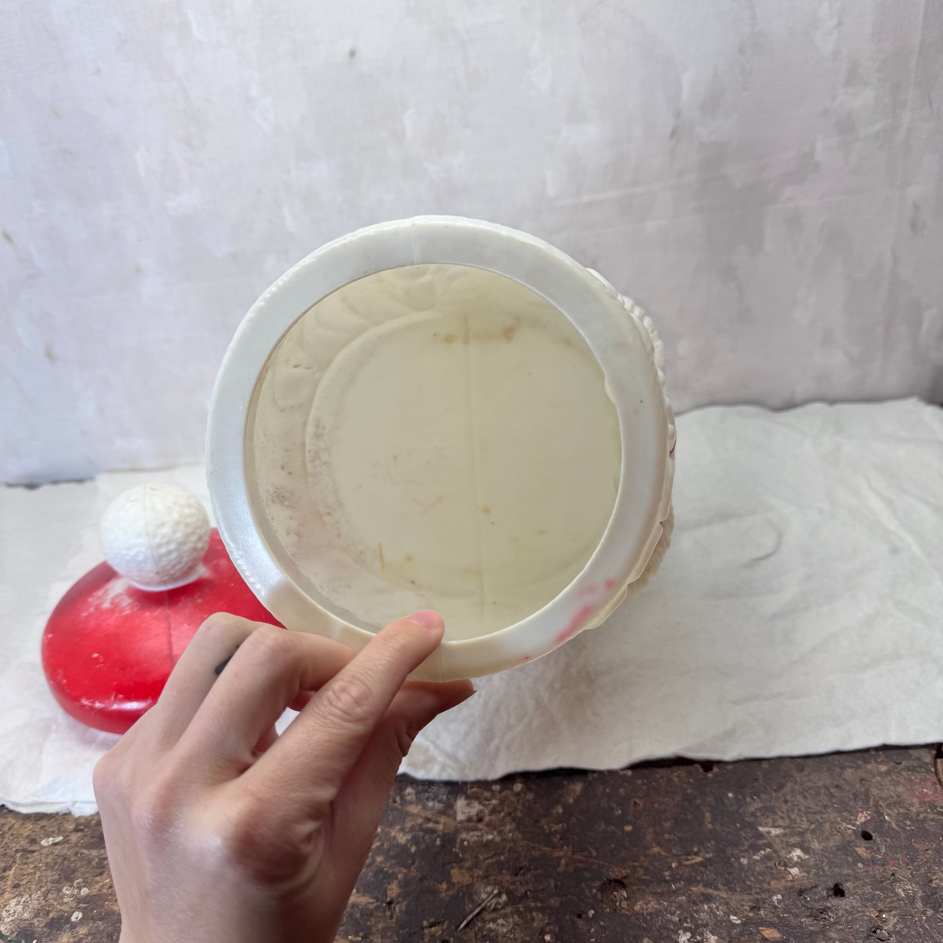 This vintage Empire Santa Cookie Jar Blow Mold Vintage is a must-have for any collector. Made by Empire, this cookie jar features a detailed Santa Claus design that will add a touch of holiday charm to your kitchen or dining room. Crafted with quality materials, this cookie jar will last for years to come.