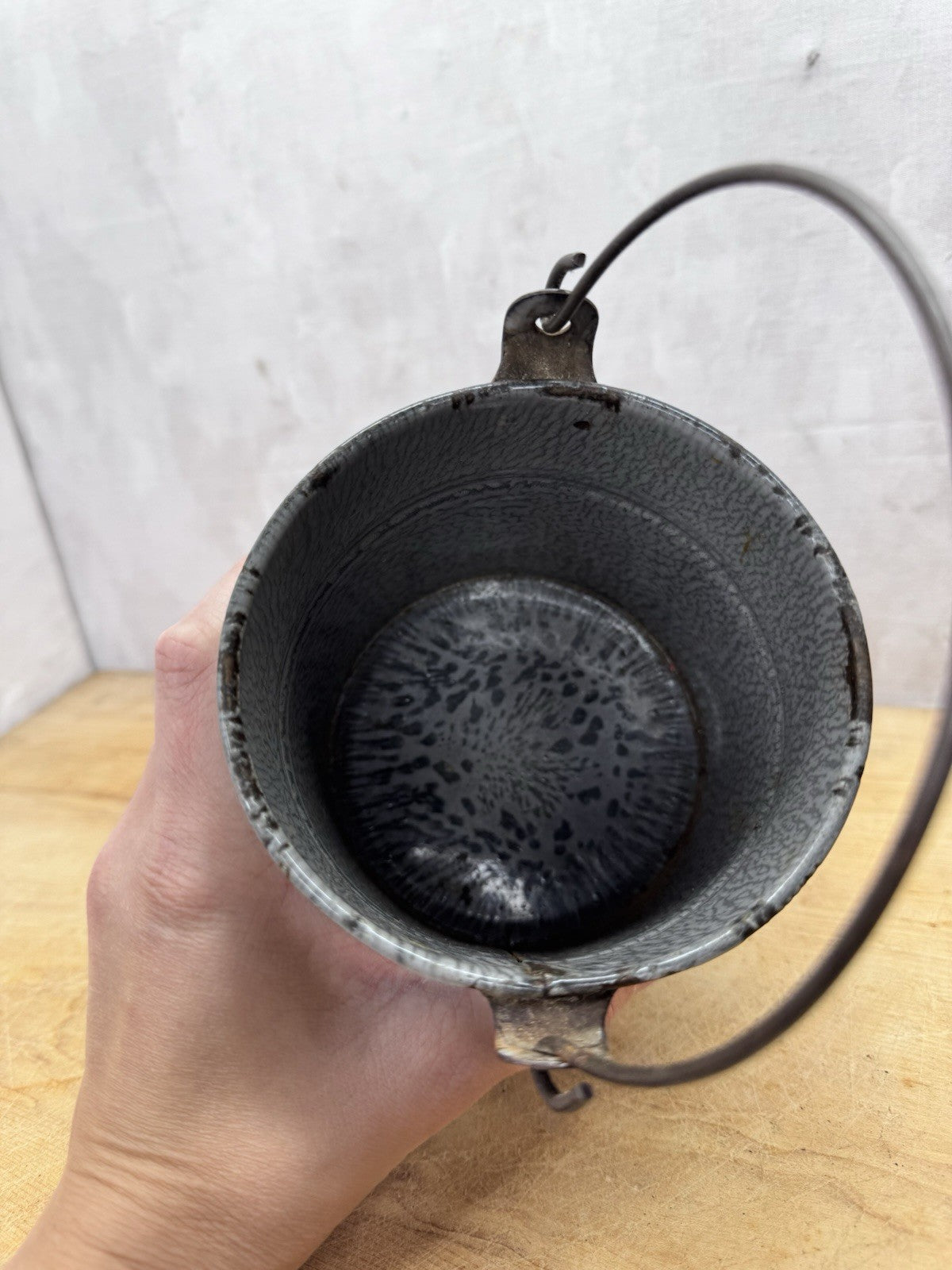 Enamel Gray Splatter Small Berry Bucket #S-1534