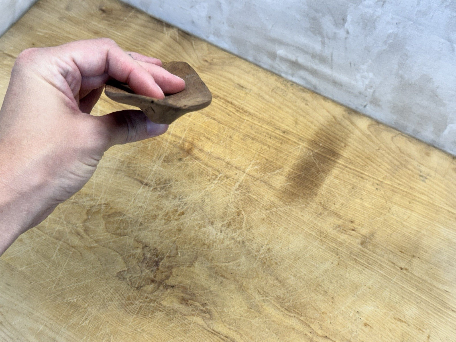 The Hand Carved Wood Scoop Antique is a unique and authentic kitchen equipment piece made from wood. It is an original vintage item that adds a touch of history and character to any kitchen. With its hand-carved design, this scoop is not only functional but also a decorative piece that showcases craftsmanship and artistry. Made from sturdy wood, this antique scoop is a practical and charming addition to any home kitchen or primitive decor collection.