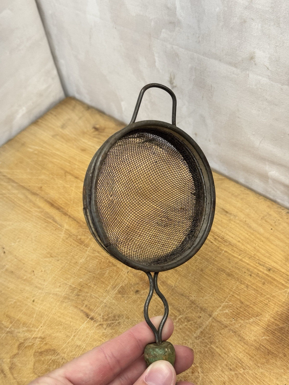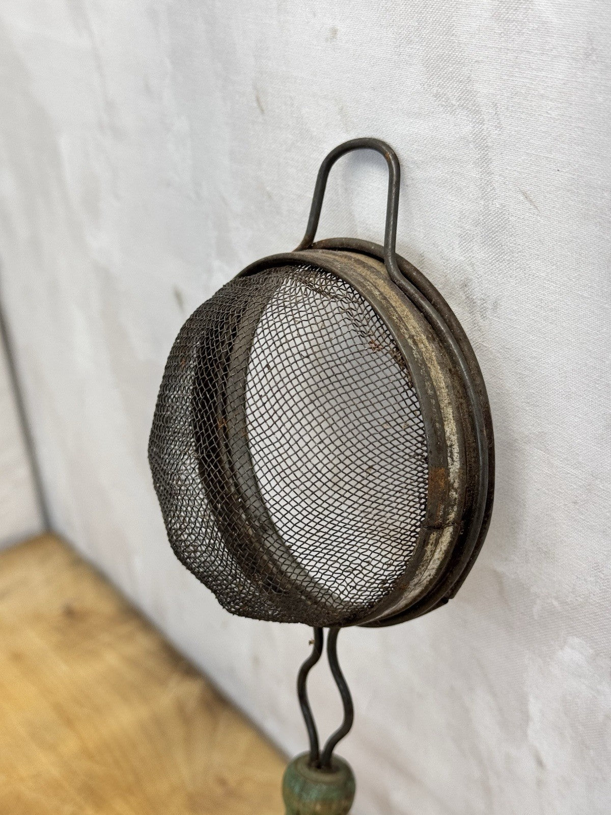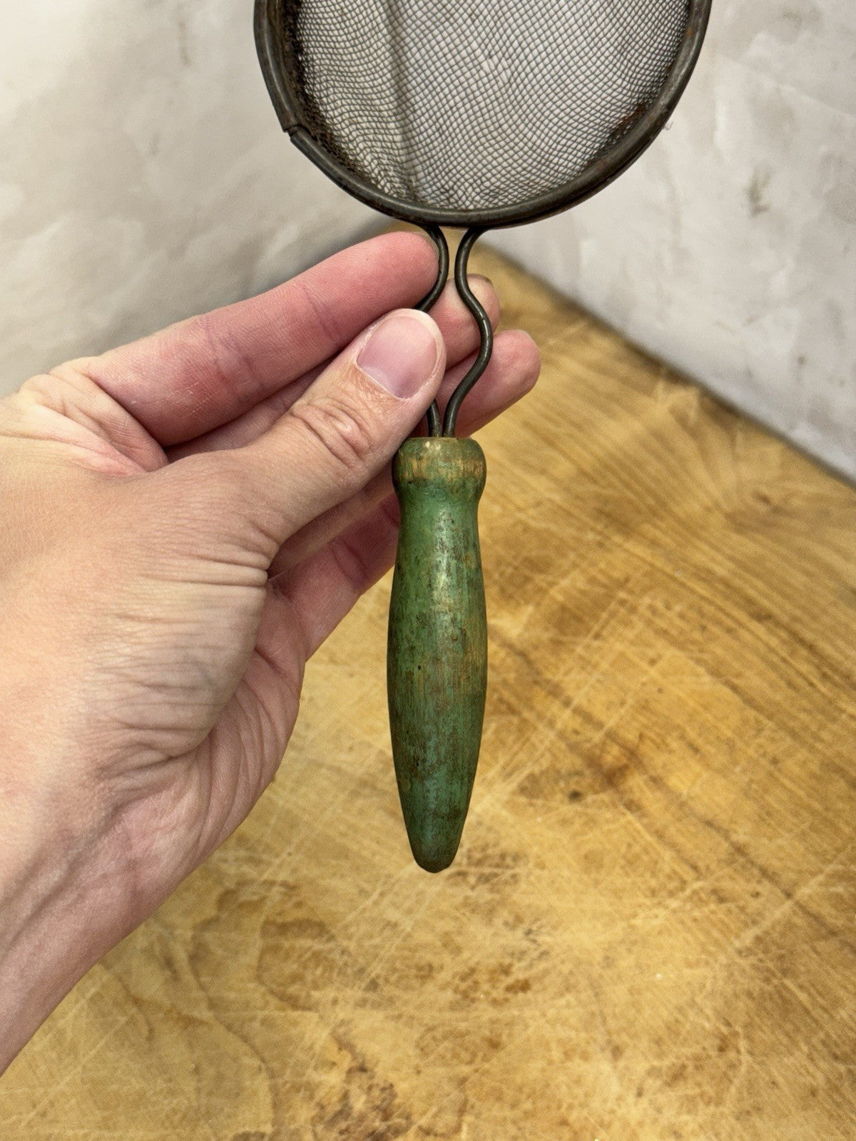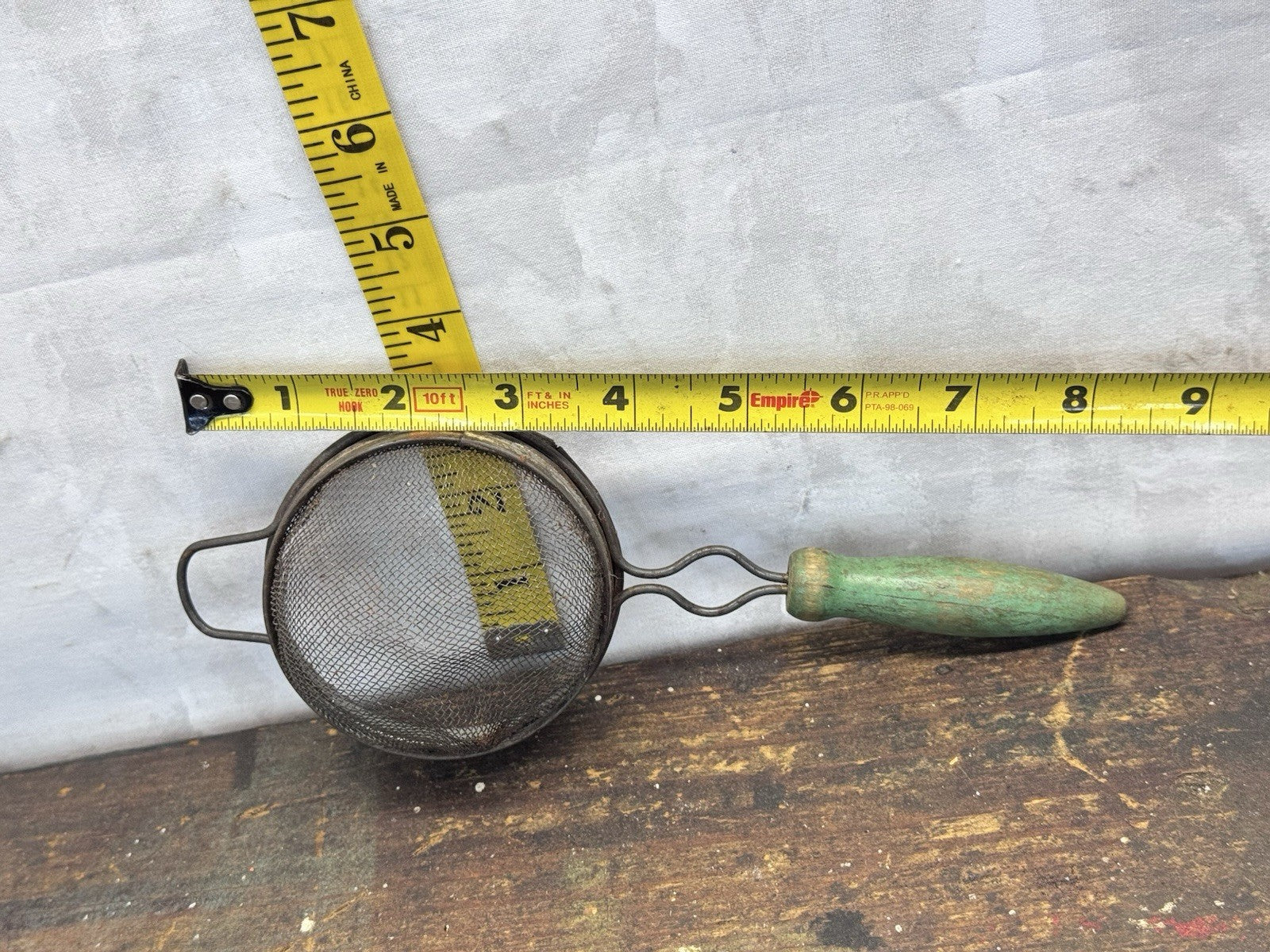 Handheld Handle Mini Green Strainer Vtg #S-1417