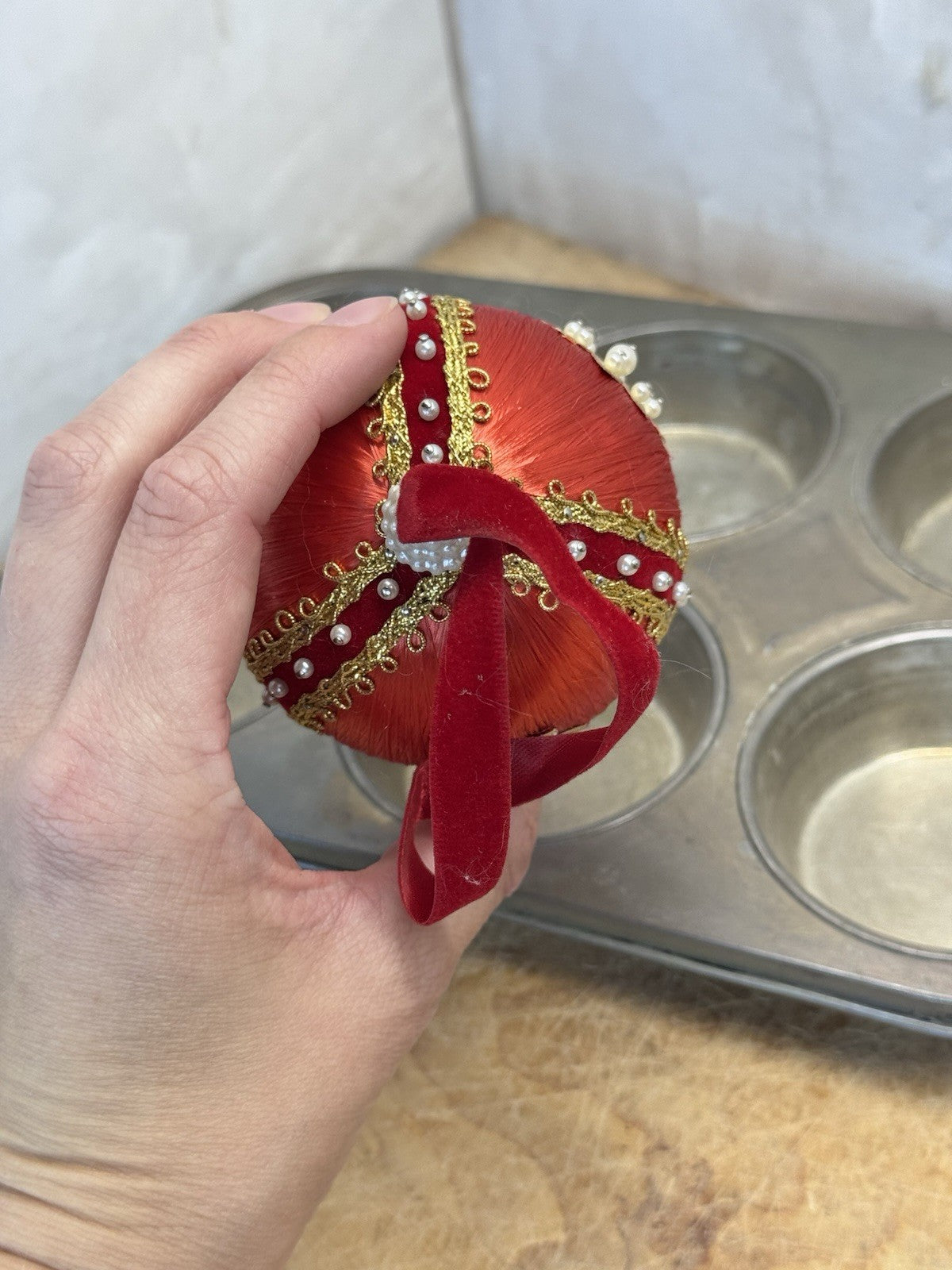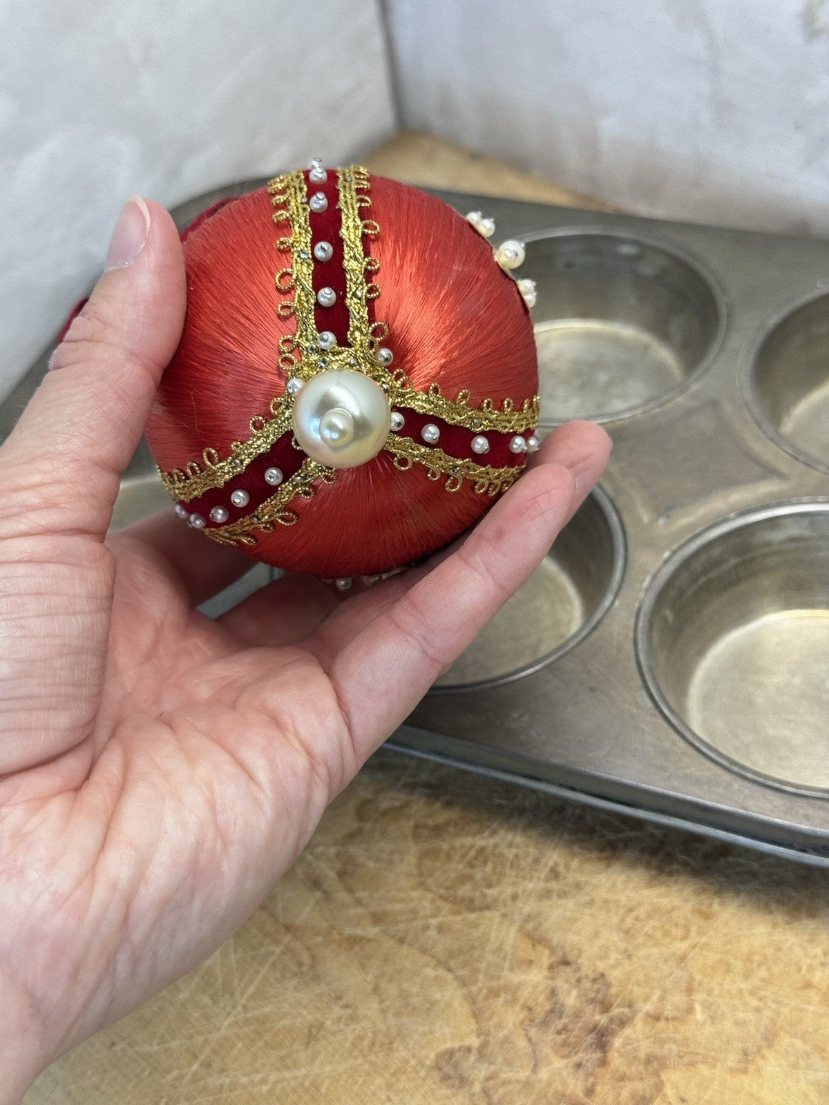 This Handmade Push Pin Christmas Ornament is a charming vintage collectible perfect for adding a nostalgic touch to your holiday decor. The unique design and vintage appeal make it a special addition to any ornament collection. The set includes a pin for easy display, and the handmade quality adds a personal touch to this festive decoration.