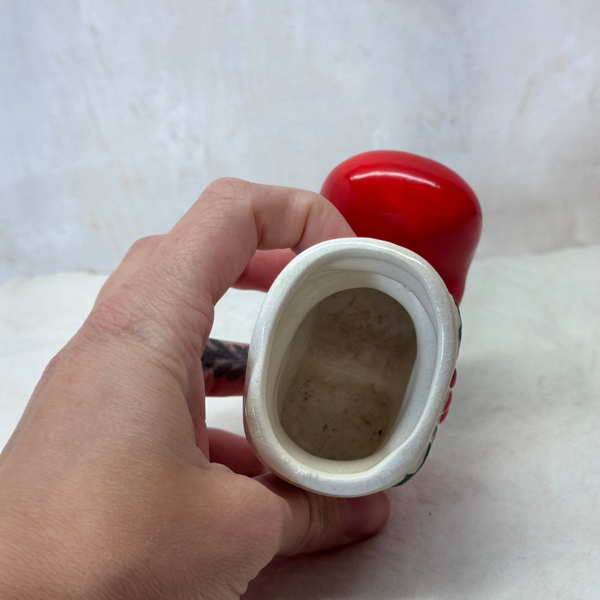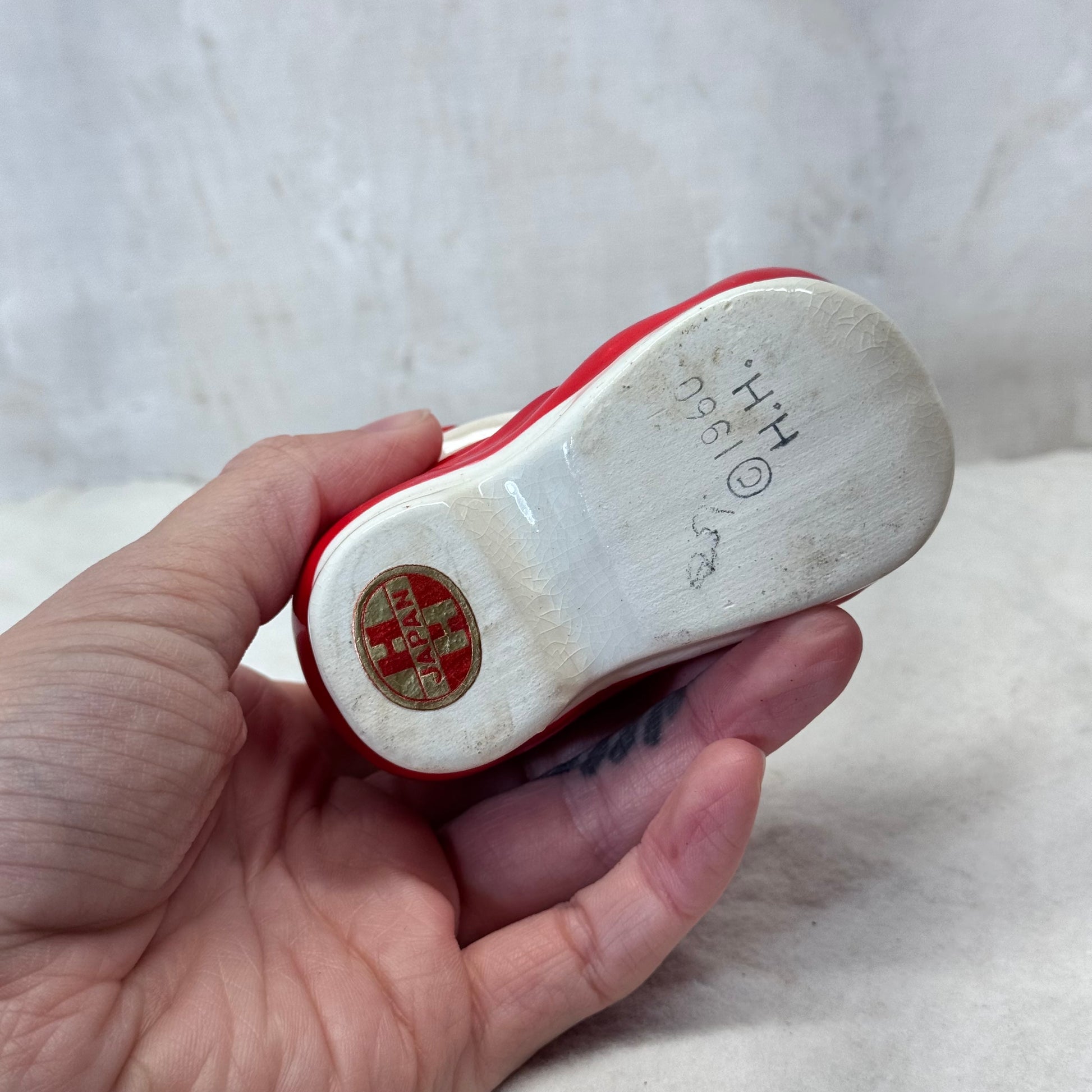 This vintage Holt Howard Santa Christmas Boot Vase Dish from Japan in 1960 is a charmingly festive addition to your holiday decor. The hand-painted boot design adds a touch of nostalgia, while the small size makes it versatile and easy to display. Perfect for holding small ornaments or candies.