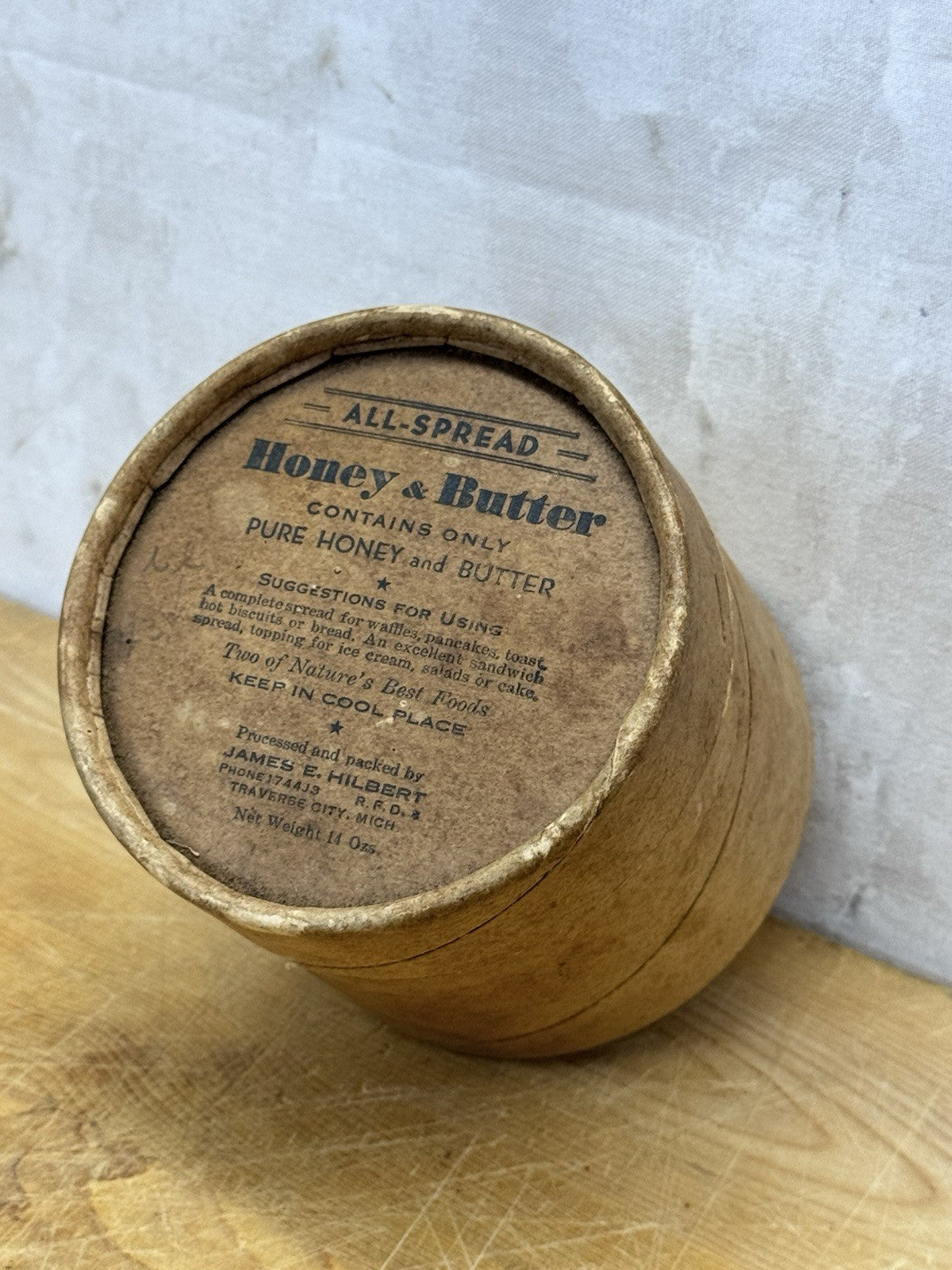 The Honey & Butter Antique Container is a collectible item that falls under the theme of dairy. This vintage container likely once held a sweet mixture of honey and butter, making it a unique and nostalgic piece for those interested in dairy advertising and collectibles. Its design and branding may reflect the aesthetics and marketing strategies of the time, adding to its charm and appeal for collectors.
