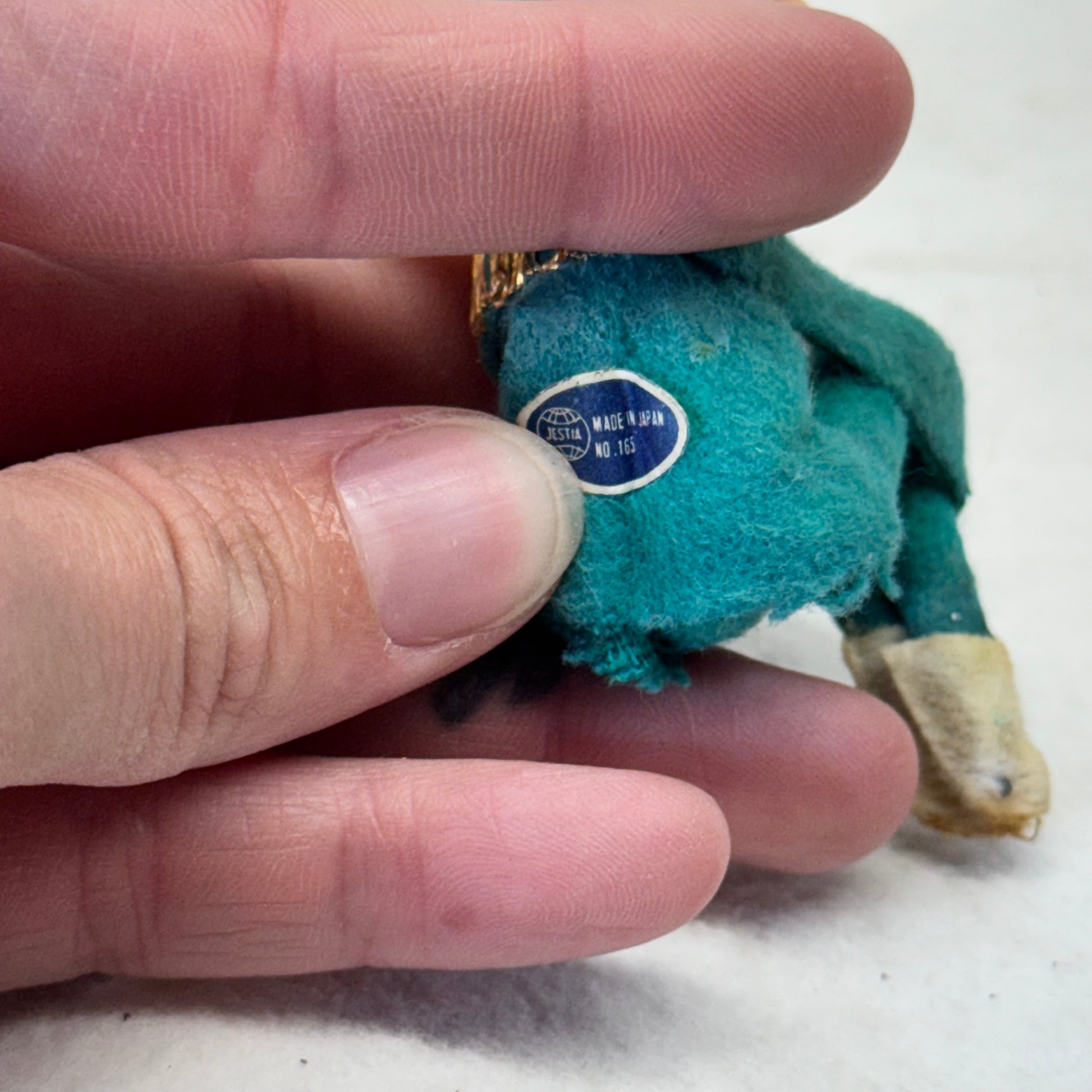 Expertly crafted in Japan, the Green Knee Hugger Elf Vintage Ornament offers a charming addition to your holiday decor. Made with high-quality materials, this adorable kneehugger boasts intricate details and a unique design. Add a touch of nostalgia to your home with this vintage treasure.