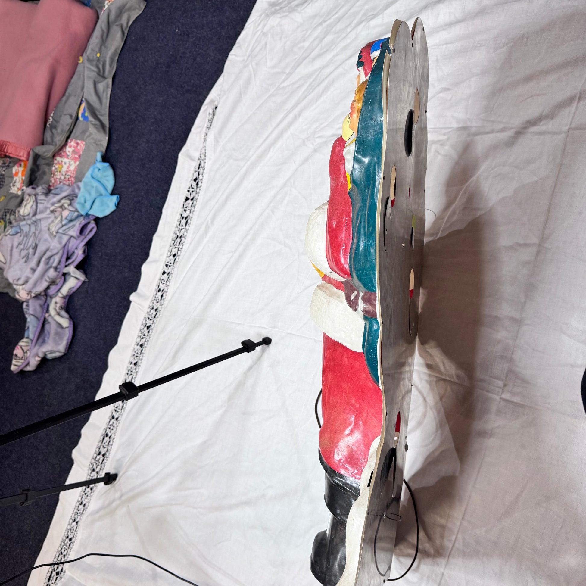 Illuminate your holiday decor with the vintage charm of our Light-Up Santa Claus Display from the 1940s. Experience the nostalgic glow of this classic piece as it adds a touch of warmth and cheer to your home. Recreate the magic of Christmases past with this timeless decoration.