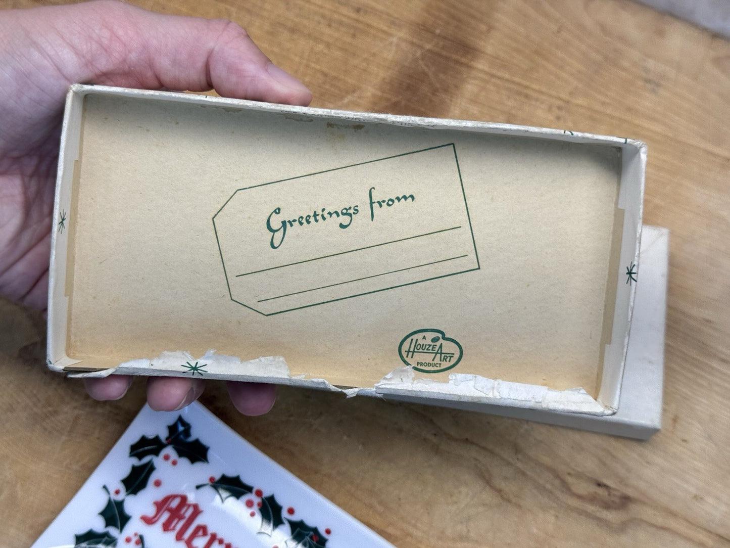 This product is a vintage collectible dish specifically designed for Christmas use. It is a NOS (New Old Stock) item, meaning it has never been used but is from a previous year. The design is likely festive and seasonal, perfect for serving holiday treats or décor during the Christmas season. Collectors may appreciate this unique and nostalgic piece to add to their holiday memorabilia collection.