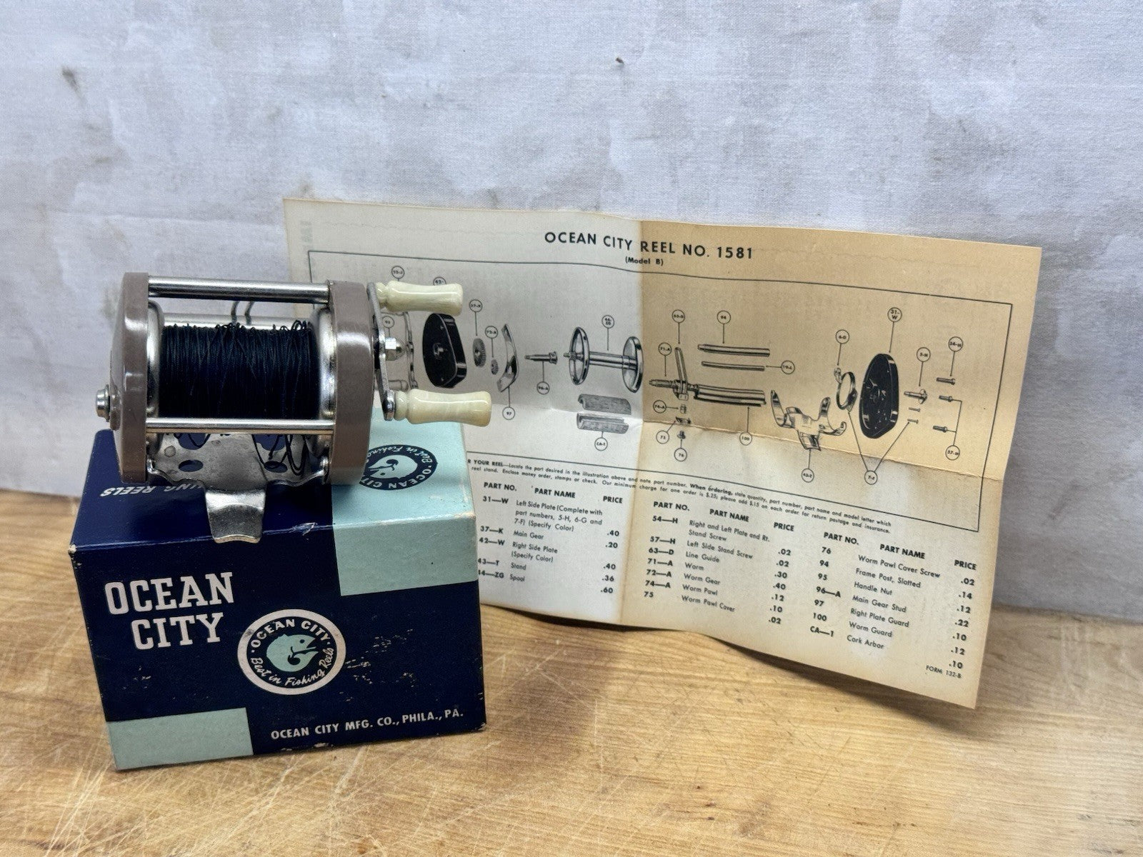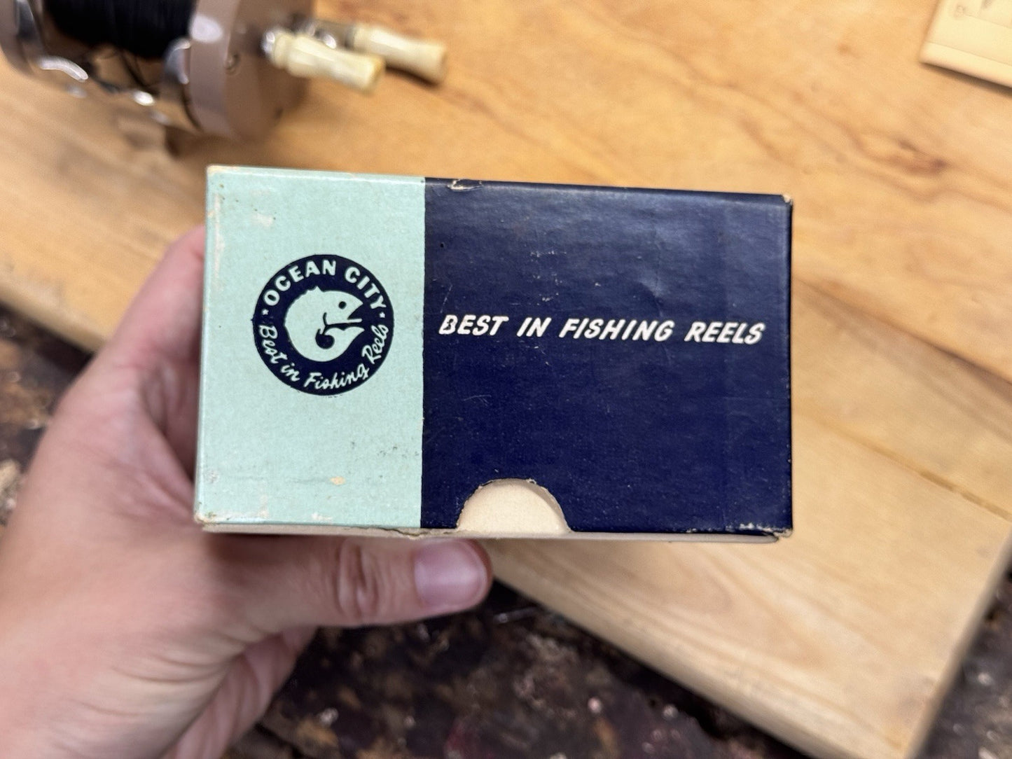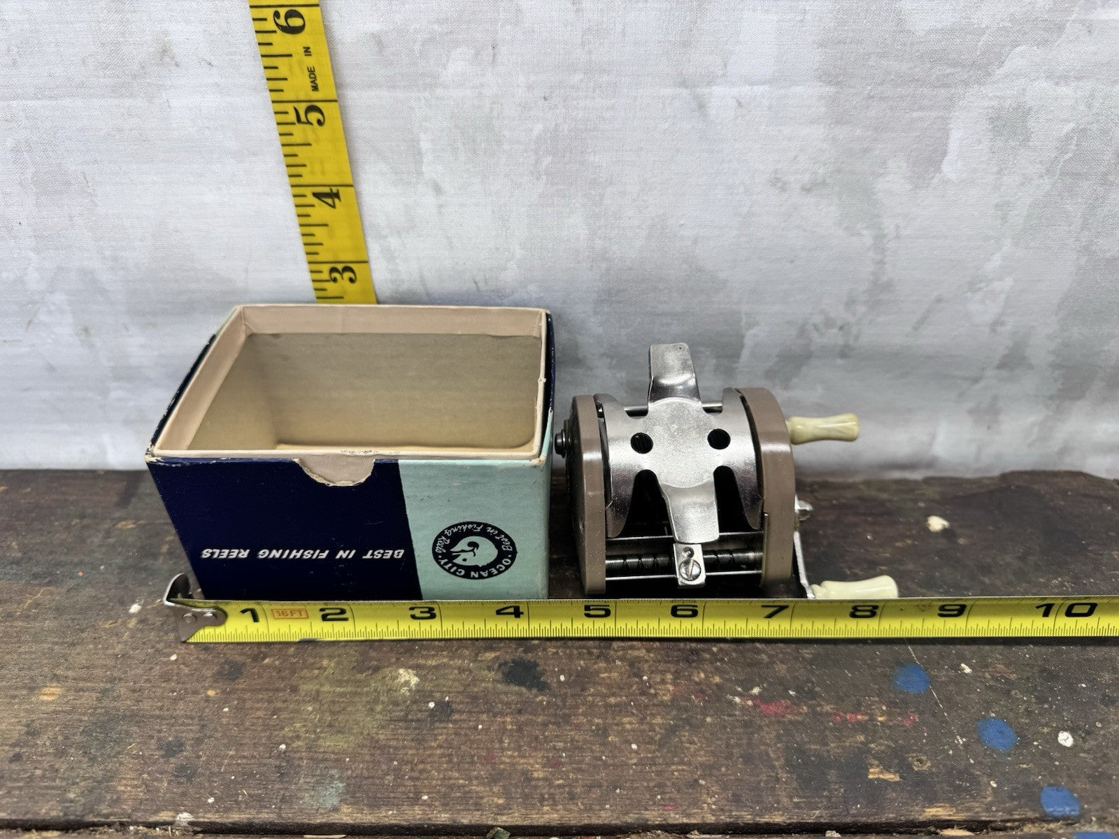 This product is a vintage fishing reel from Ocean City, known for its quality and craftsmanship in the fishing industry. The reel comes with its original box, adding to its collectible value for fishing enthusiasts or collectors of vintage fishing gear. With its retro design and functionality, this reel is a charming piece of history that would make a unique addition to any fishing gear collection.