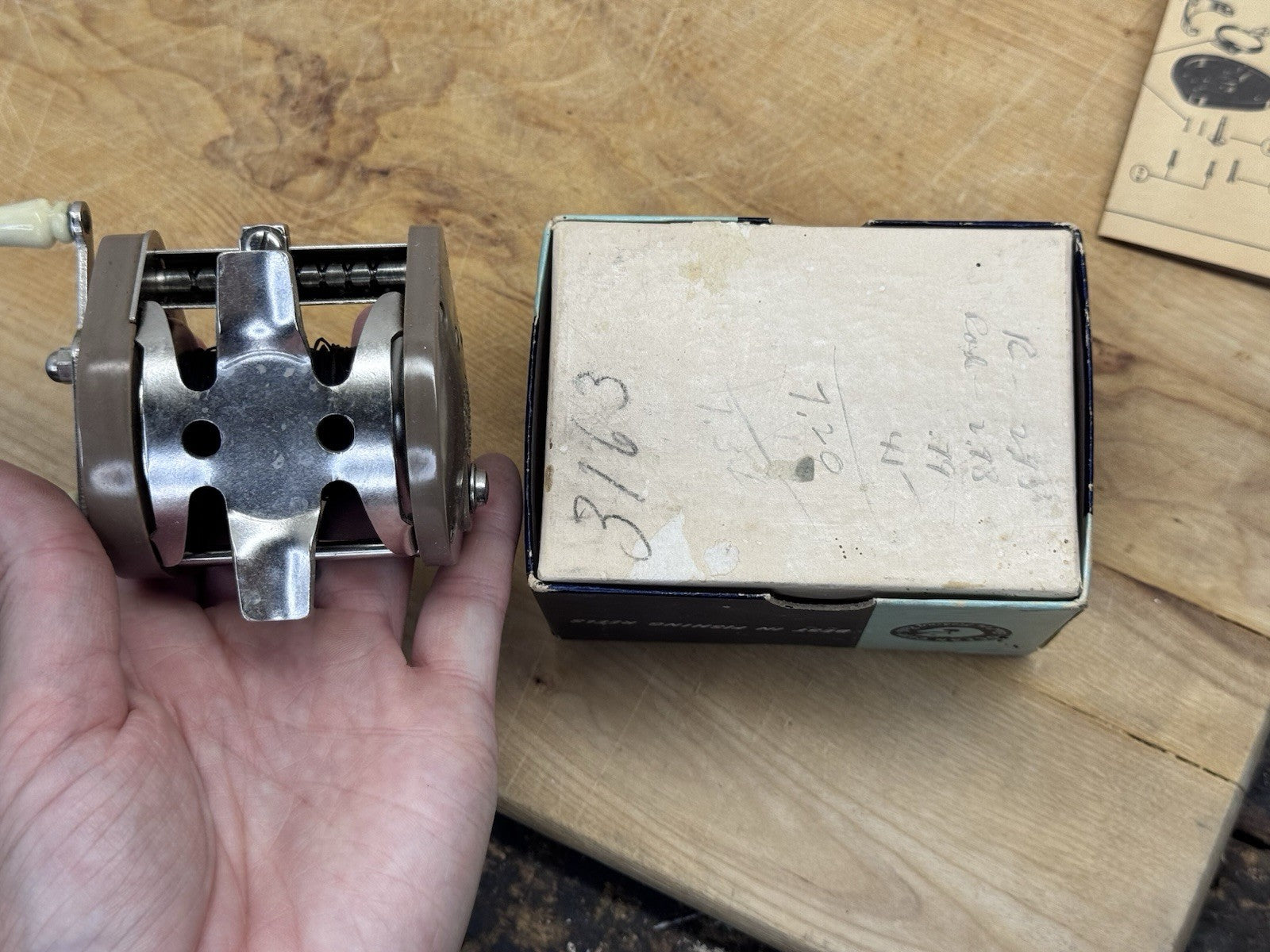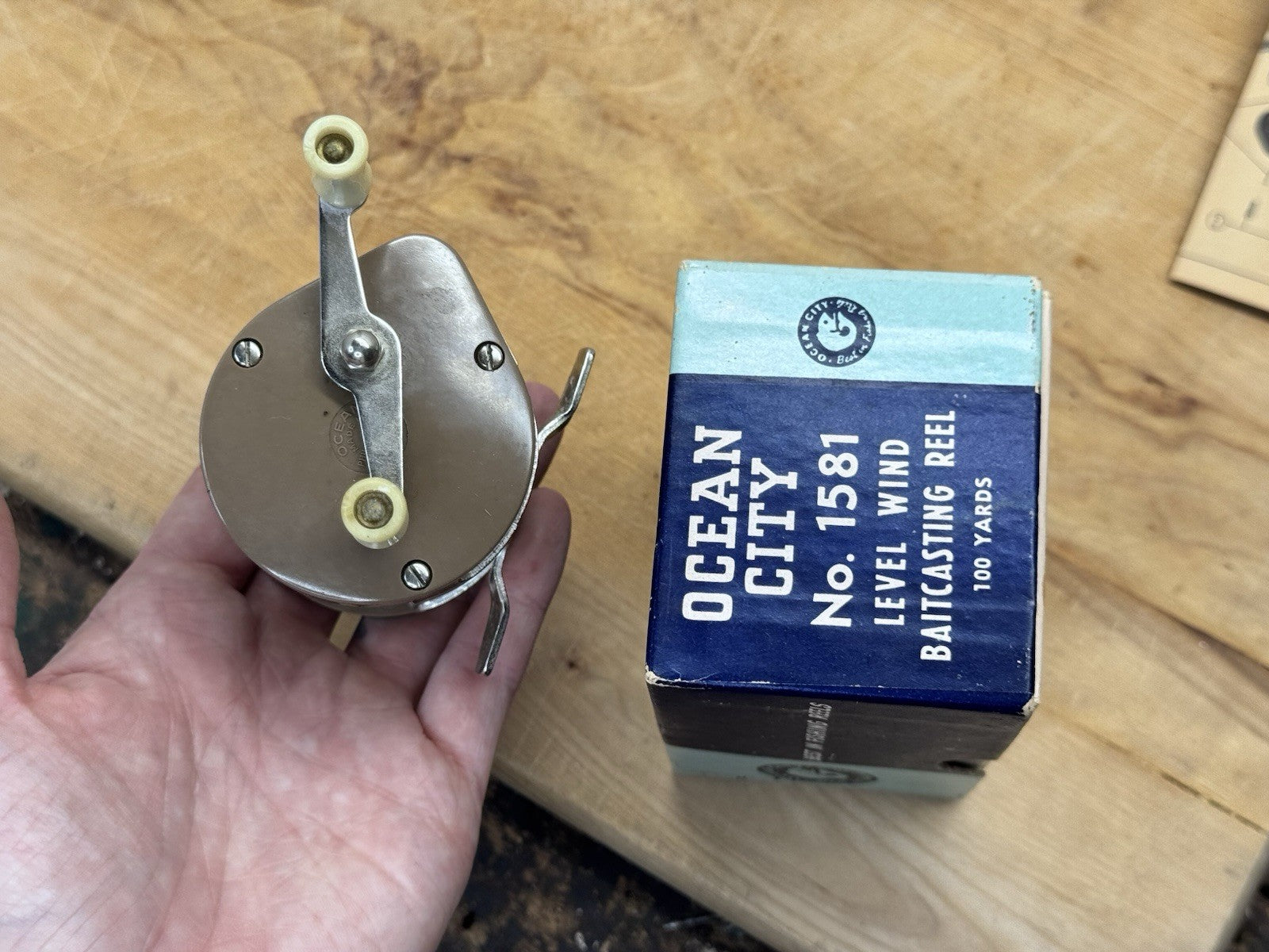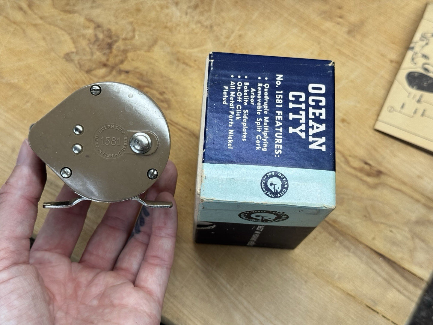 This product is a vintage fishing reel from Ocean City, known for its quality and craftsmanship in the fishing industry. The reel comes with its original box, adding to its collectible value for fishing enthusiasts or collectors of vintage fishing gear. With its retro design and functionality, this reel is a charming piece of history that would make a unique addition to any fishing gear collection.