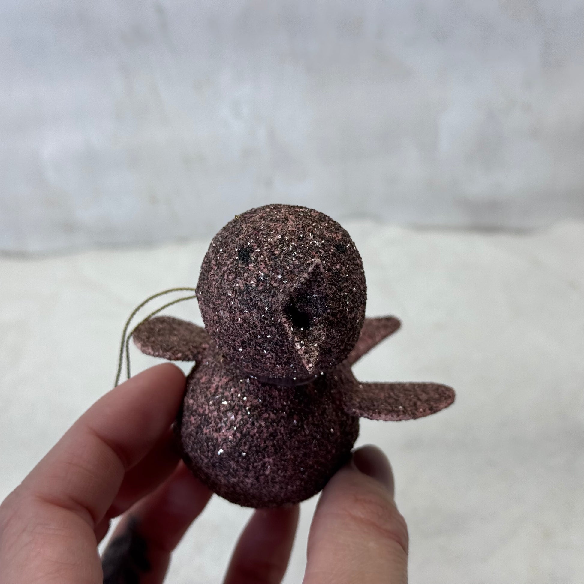 This Paper Mache Pink Glitter Bird Ornament is a stunning addition to your holiday decorations. Made with intricate details and bright glitter, this ornament is handcrafted from paper mache for a unique touch. Bring a touch of nature indoors with this beautiful bird ornament.Repaired