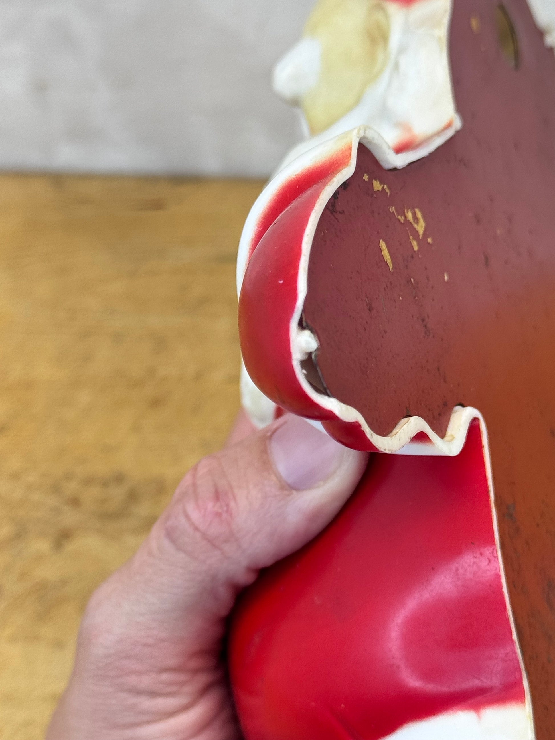 Expertly crafted from durable plastic, this vintage Santa blow mold is sure to add a festive touch to your holiday decorations. With its charming and traditional design, this Santa figurine will bring joy to any space. Perfect for indoor use, spread some Christmas cheer with this classic piece.