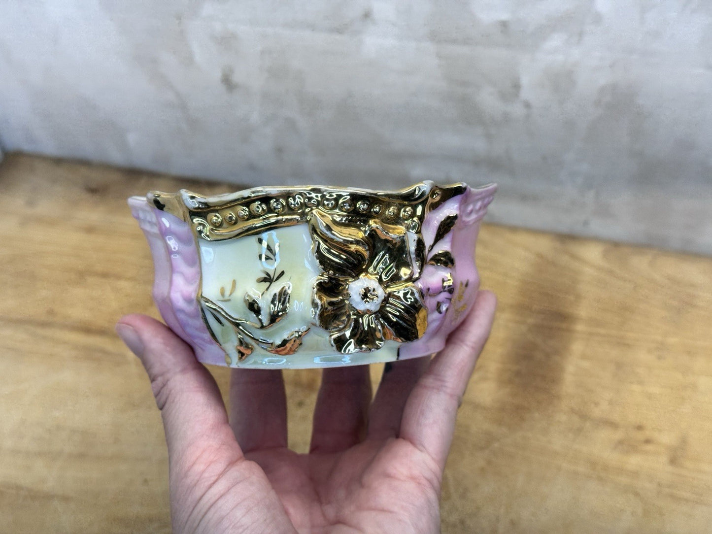 Porcelain Decorative Bowl Gold Painted Accents Pink Antique #1430