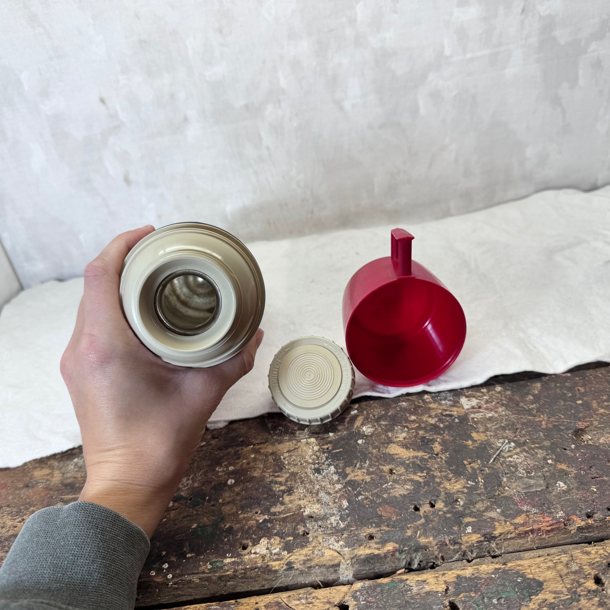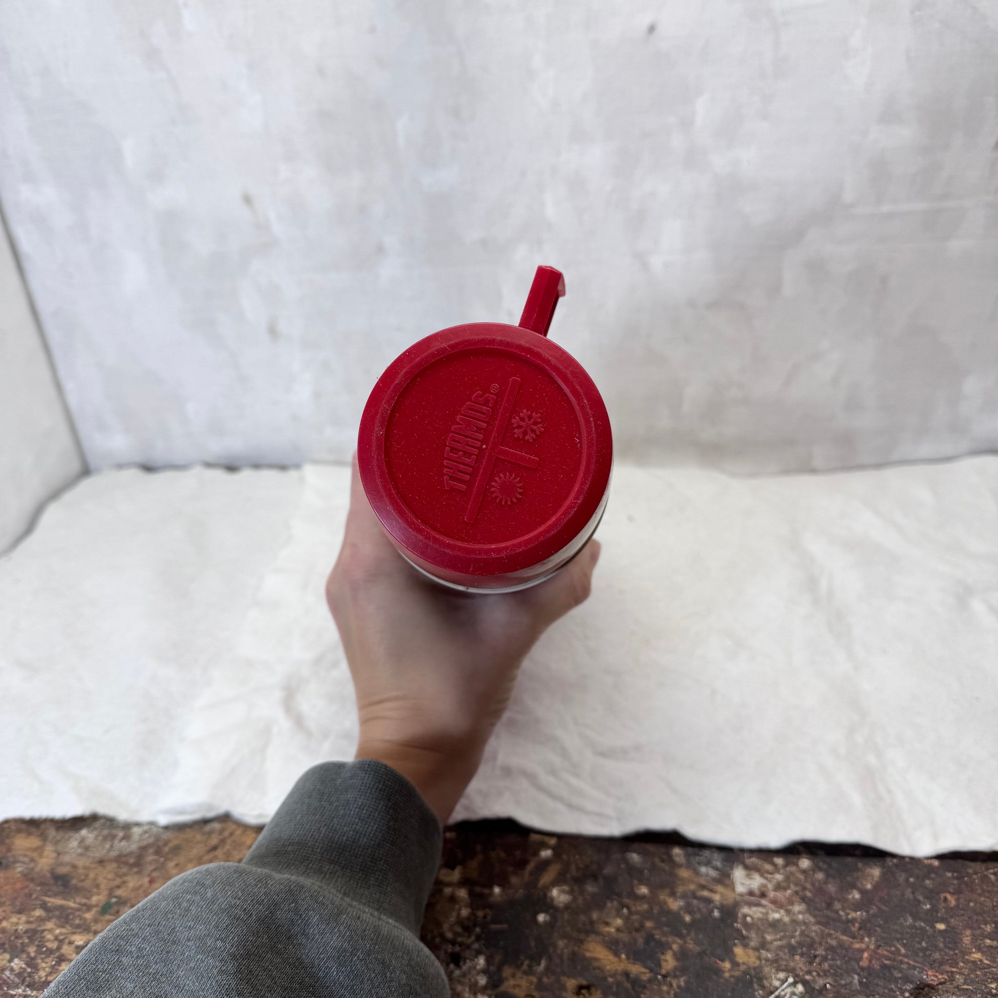Red Black Plaid Christmas Thermos Metal Vintage #2053