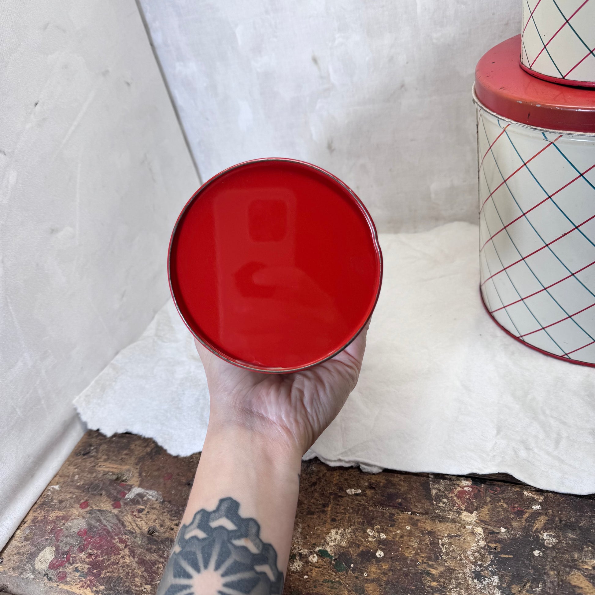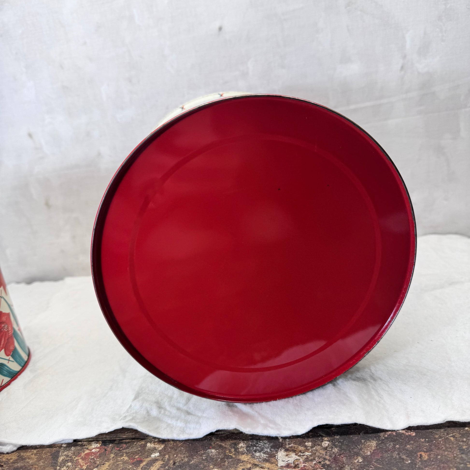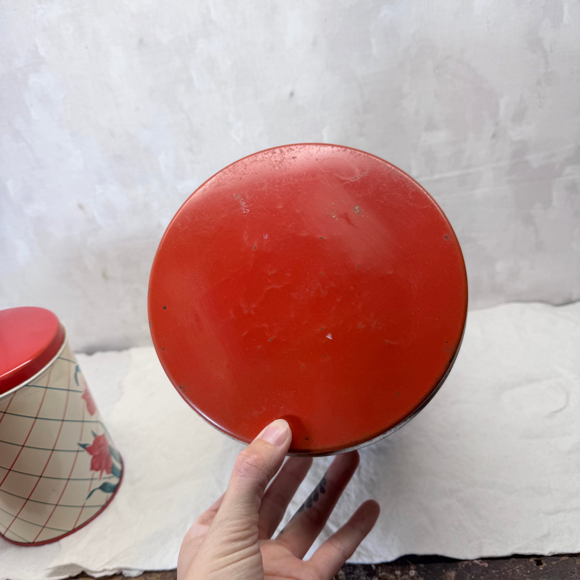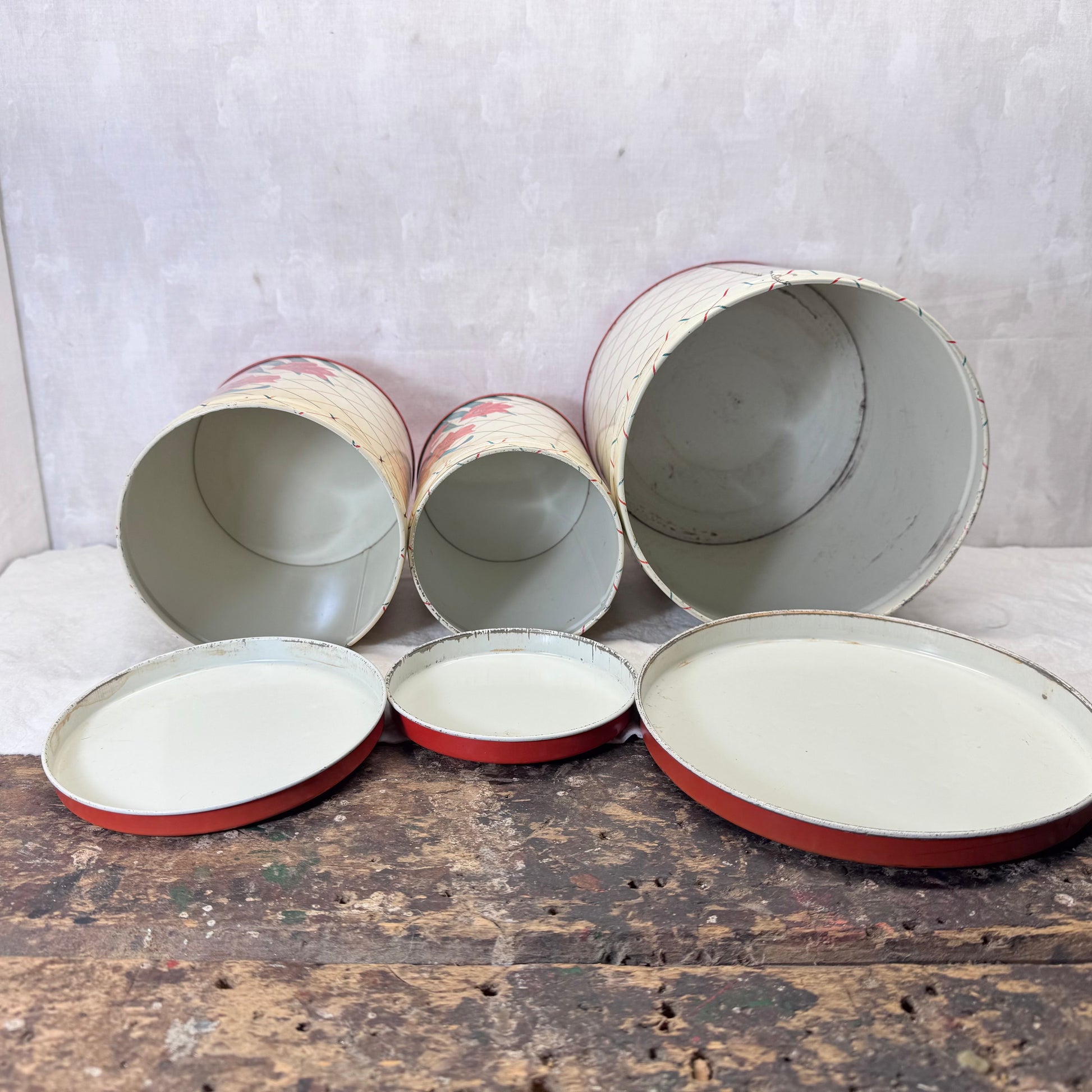 Red Green Floral Kitchen Canister Christmas Tin Set Vintage #2195