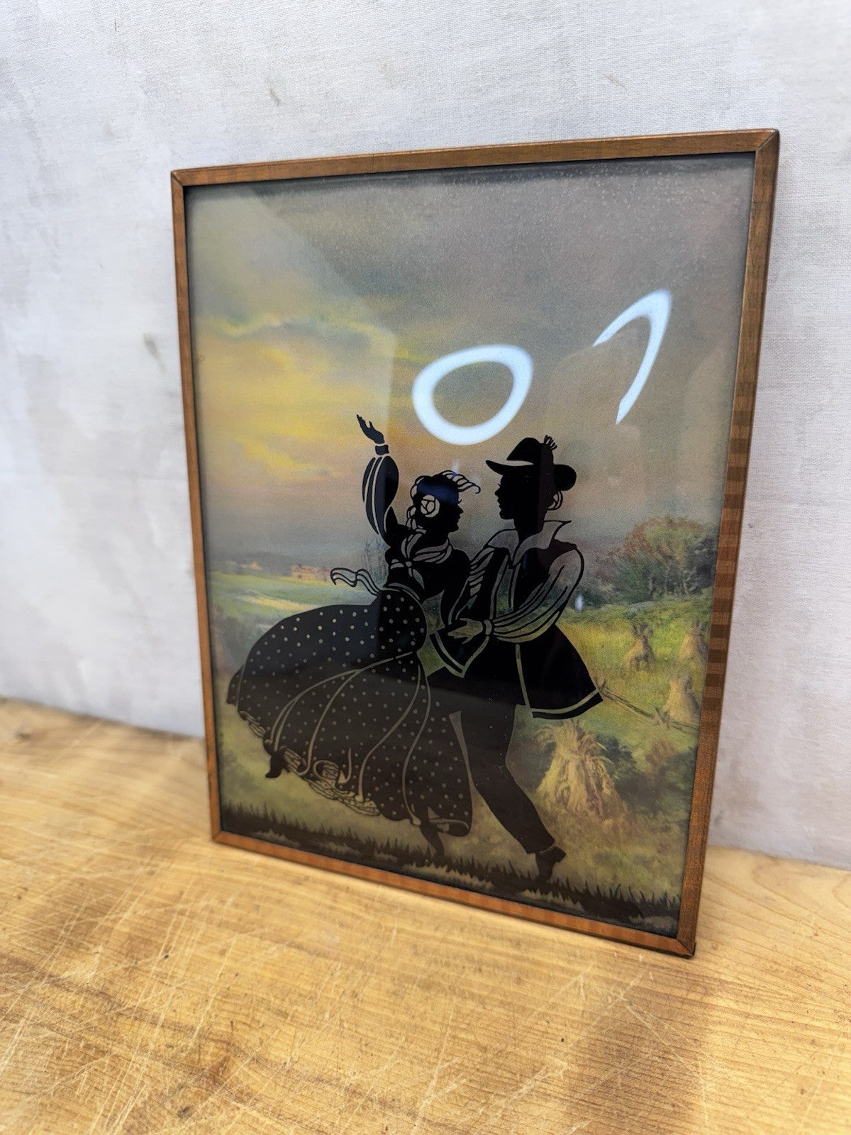 The Reverse Silhouette Painting Antique is a unique artwork featuring a silhouette theme. The painting is done in reverse, meaning the artist starts with a blank canvas and works backwards to add layers and details. This technique creates a one-of-a-kind piece that is visually intriguing and adds an element of mystery to the artwork. Silhouettes are of particular interest in this piece, allowing the artist to explore shapes, shadows, and light in a creative and unconventional way.