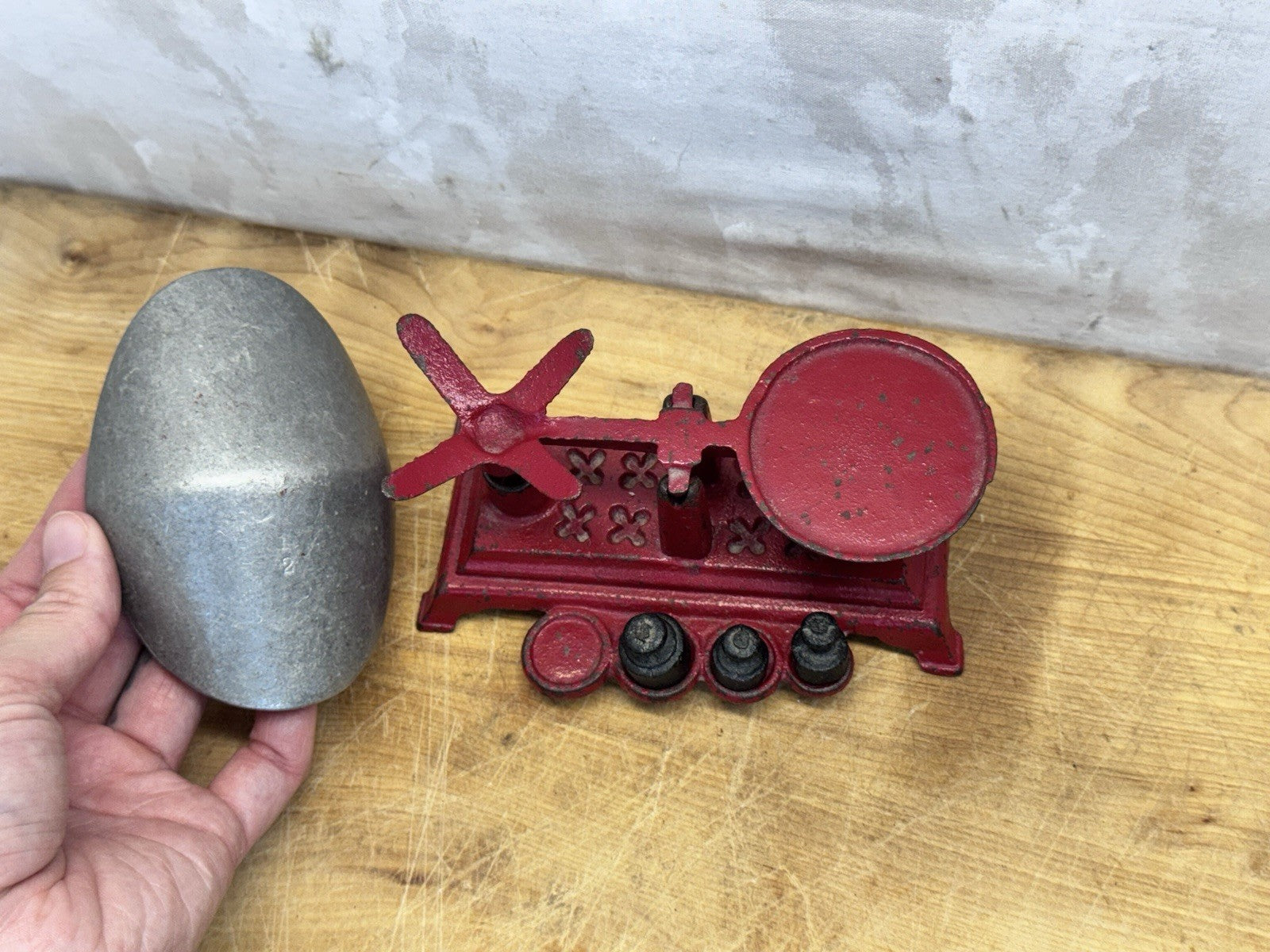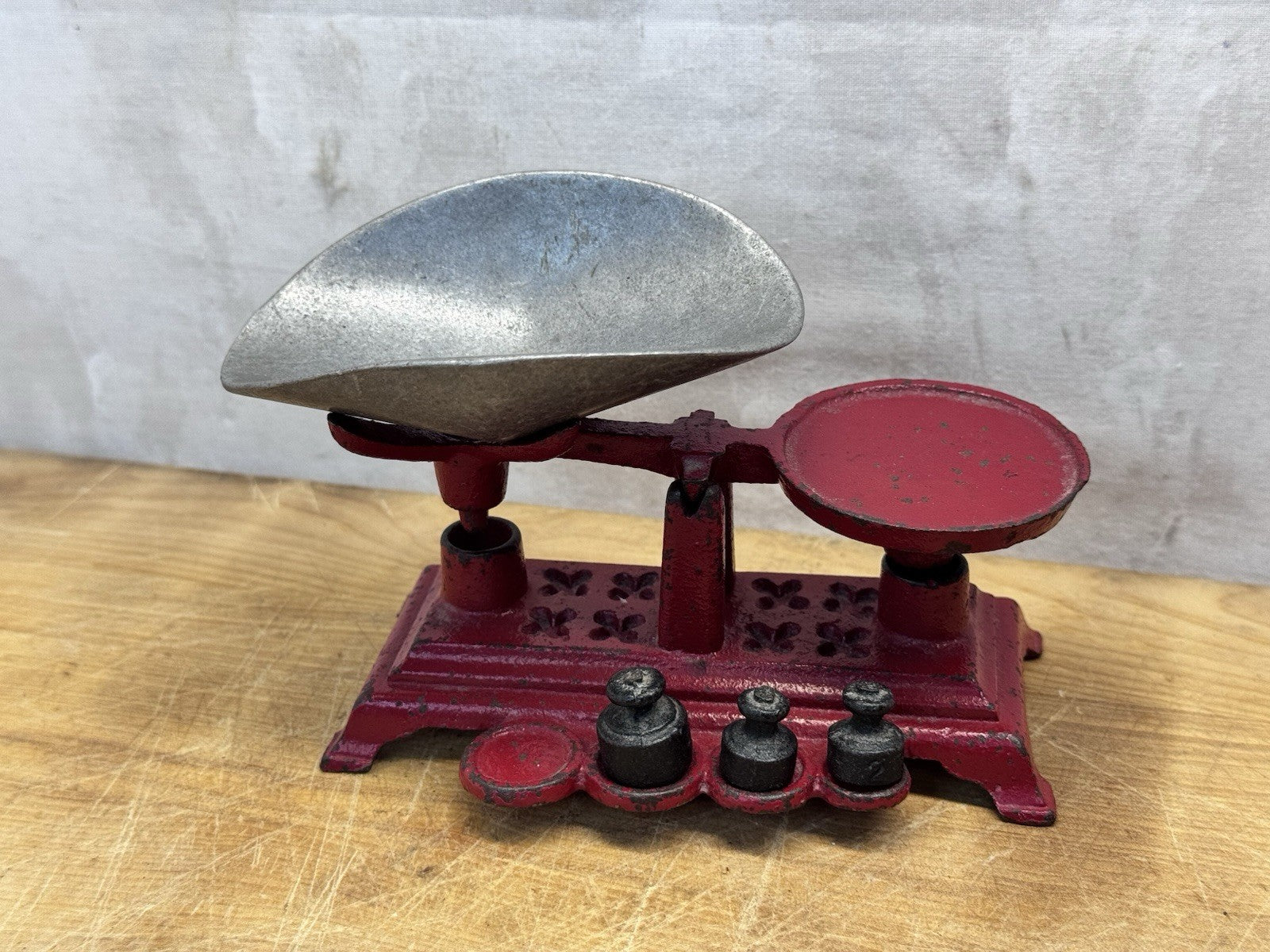 The Salesman Sample Scale Antique is a unique and vintage piece that would be a prized addition to any collector's inventory. This scale likely served as a tool for merchants to weigh and measure various items in their storerooms or market stalls. Its design and craftsmanship reflect the historical significance of accuracy and precision in commerce. Perfect for those who appreciate the history and artistry of antique mercantile tools, this scale is a charming reminder of a bygone era of trade and industry. Missing 1 weight
