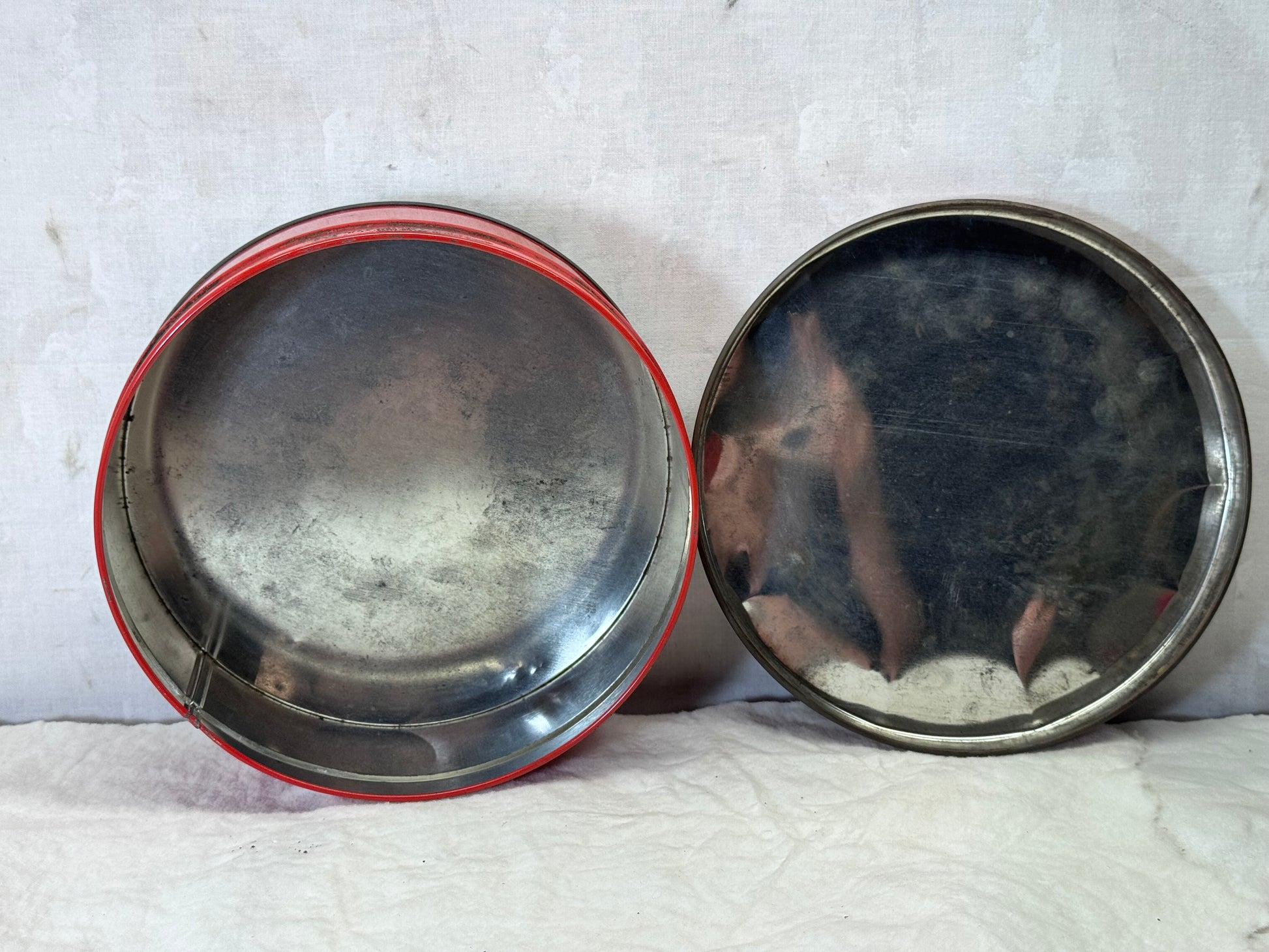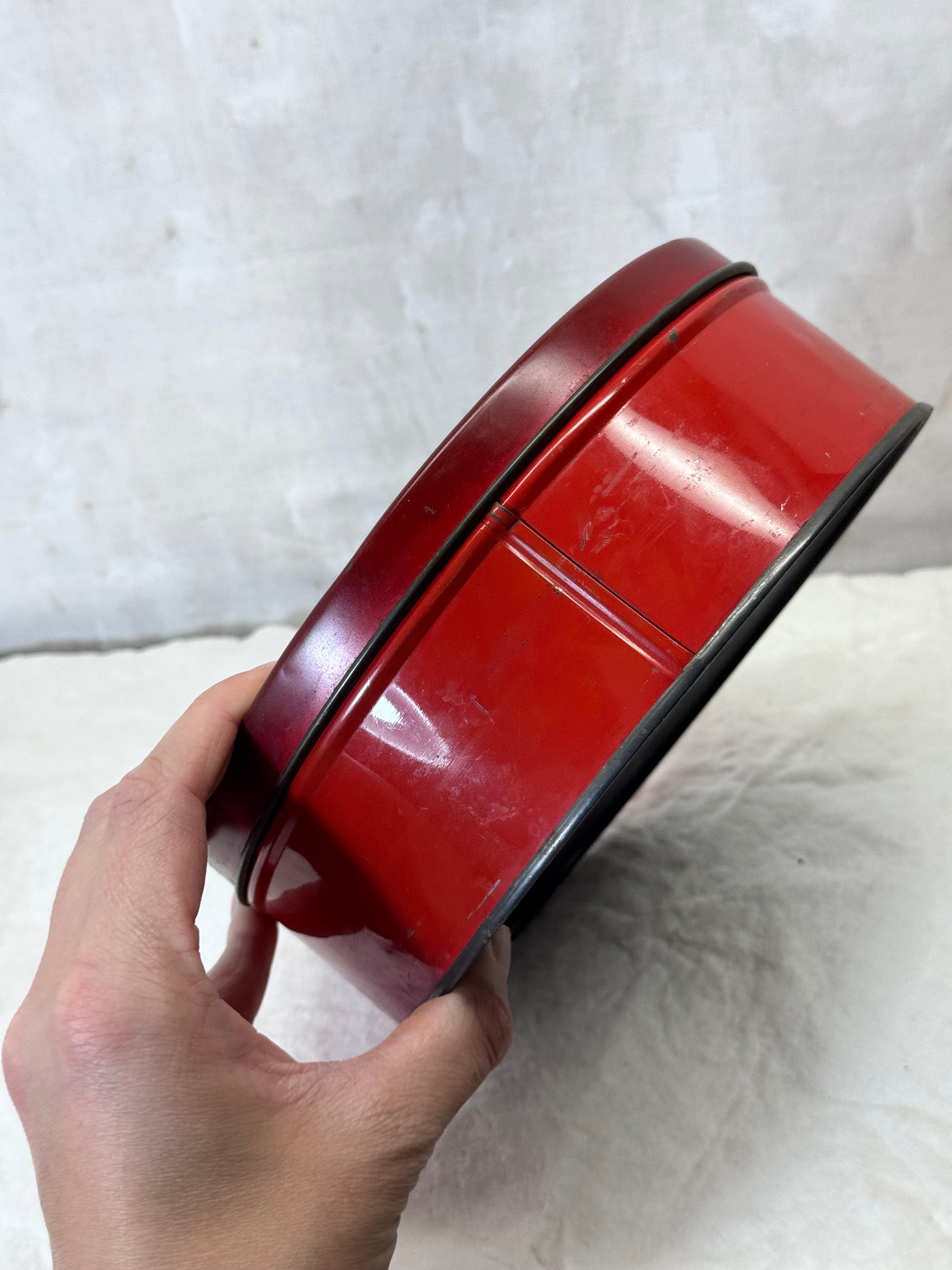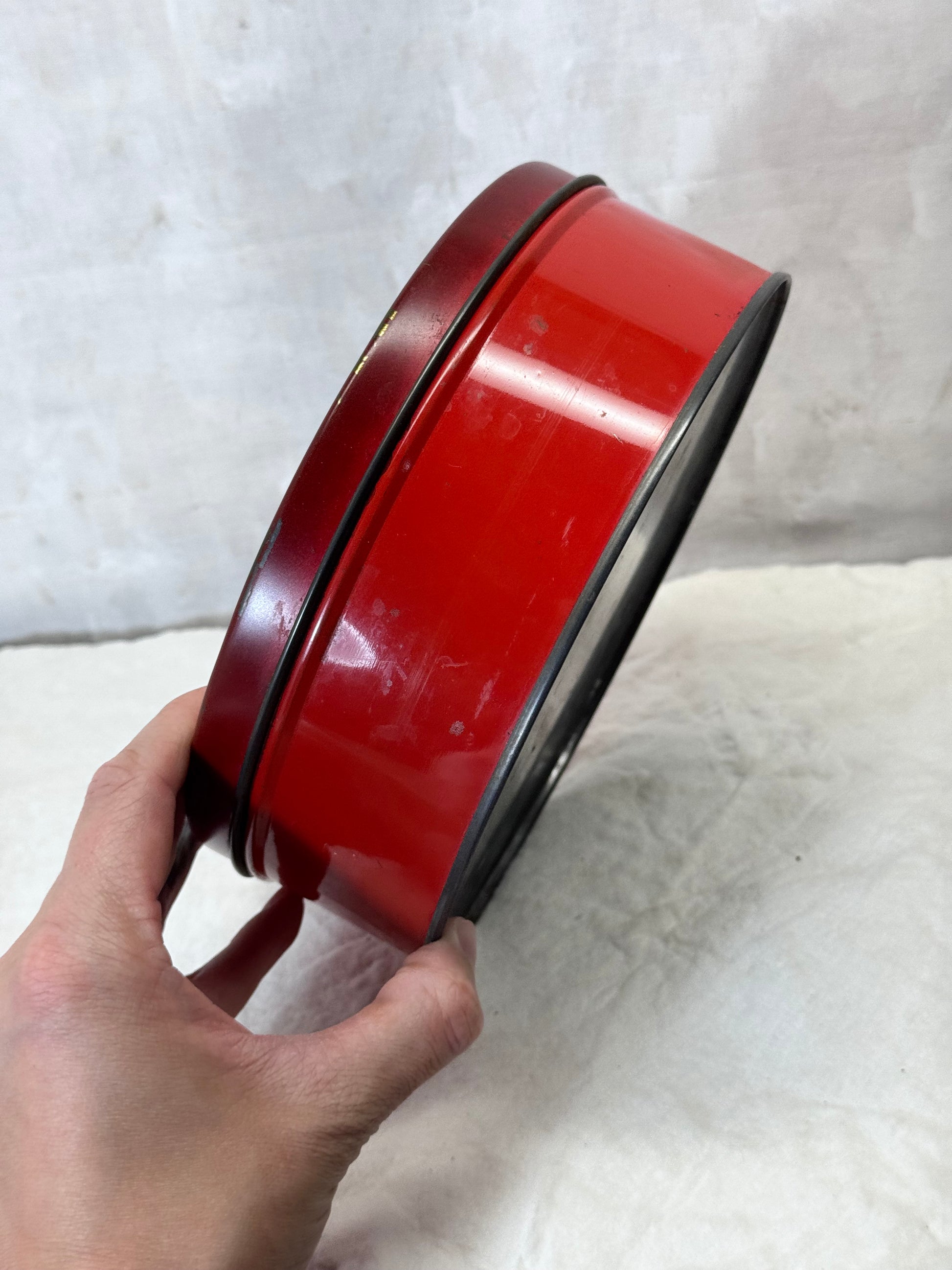 Santa’s Sleigh Christmas Tin Round Empty Vintage #1889