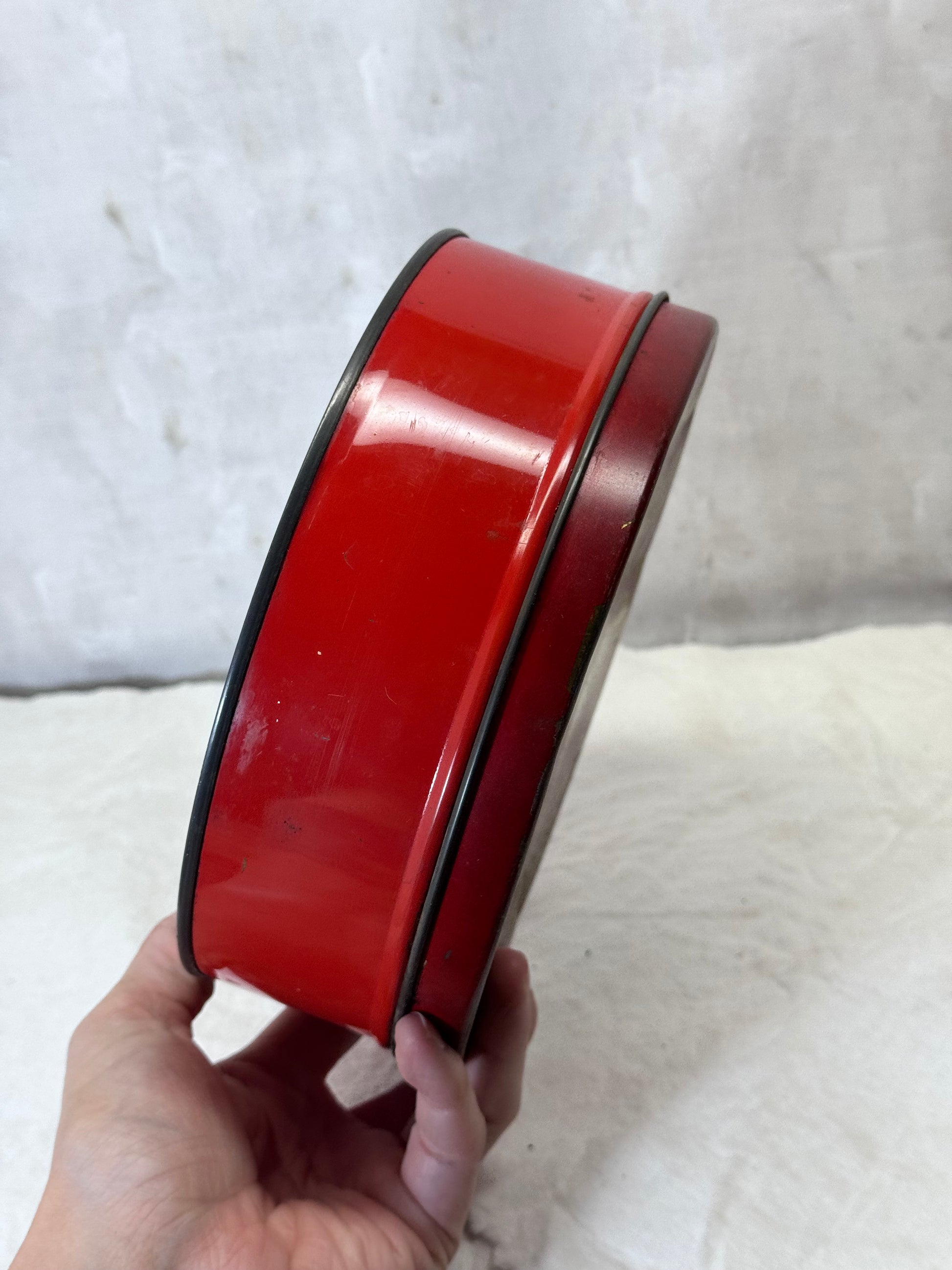 Introducing the Santa's Sleigh Christmas Tin, a vintage style round tin emblazoned with a festive image of Santa Claus. This holiday tin is perfect for storing small gifts, treats, or mementos. Spread some jolly cheer with this charming collectible.