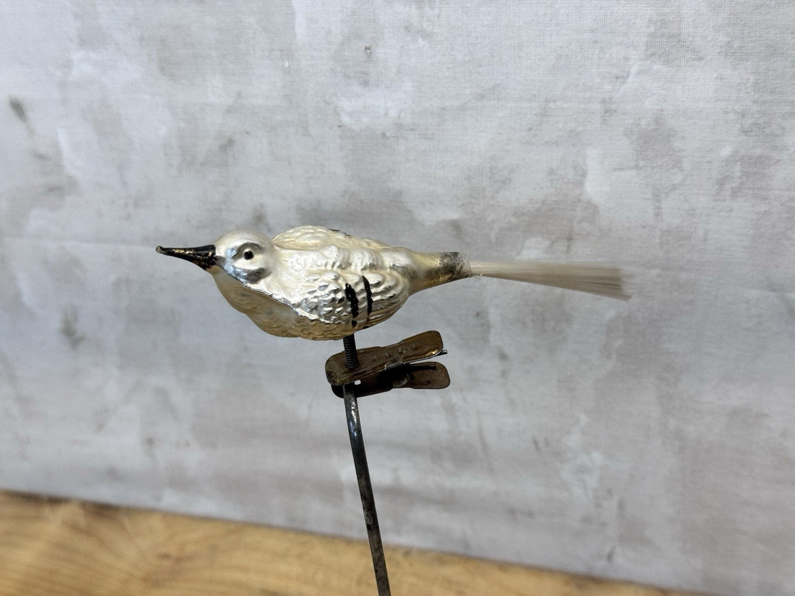 The Silver Antique Glass Bird Clip On Ornament is a beautifully crafted decorative piece perfect for adding a touch of elegance to any holiday or seasonal display. Made from high-quality glass in a silver color, this ornament is a unique addition to any ornament collection. Its intricate design featuring a bird shape makes it a standout piece that is sure to be a conversation starter. Whether used for decorating a Christmas tree or as a charming accent for a seasonal display, this ornament is sure to bring joy and a touch of vintage charm to any space.
