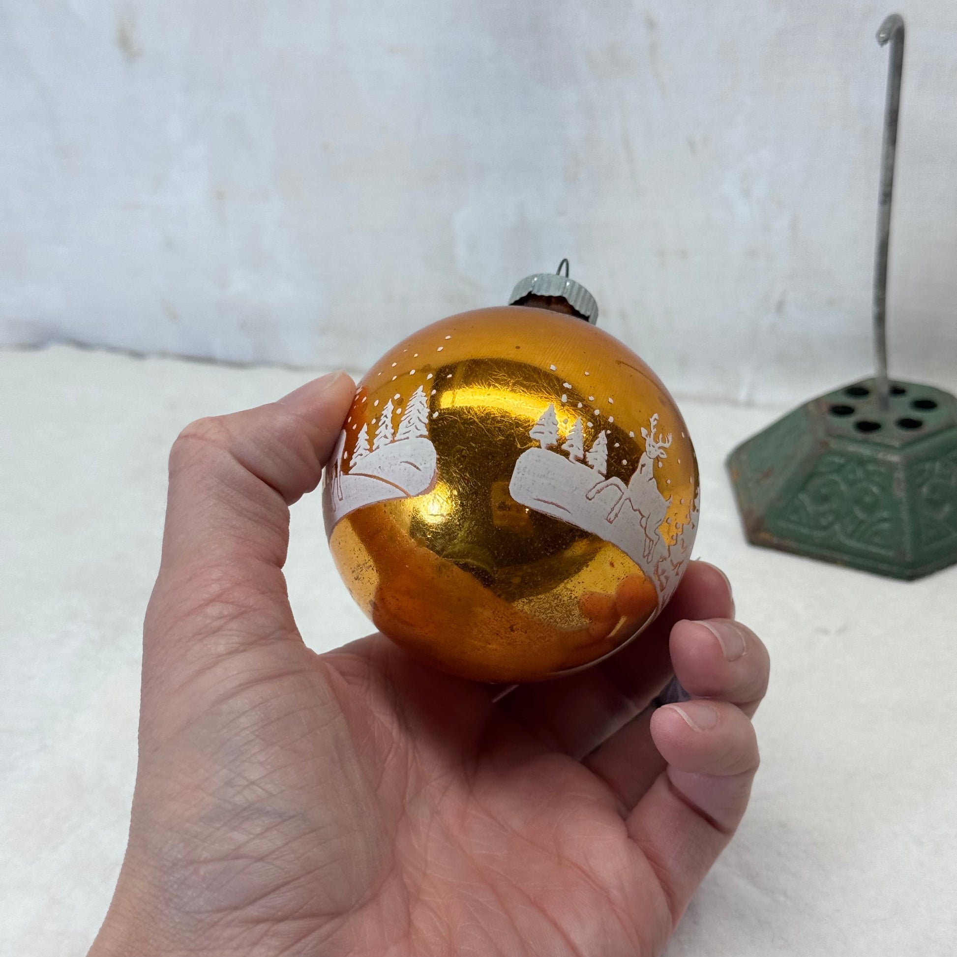 Stenciled Yellow/Gold Shiny Brite Glass Ornament Vintage #2066