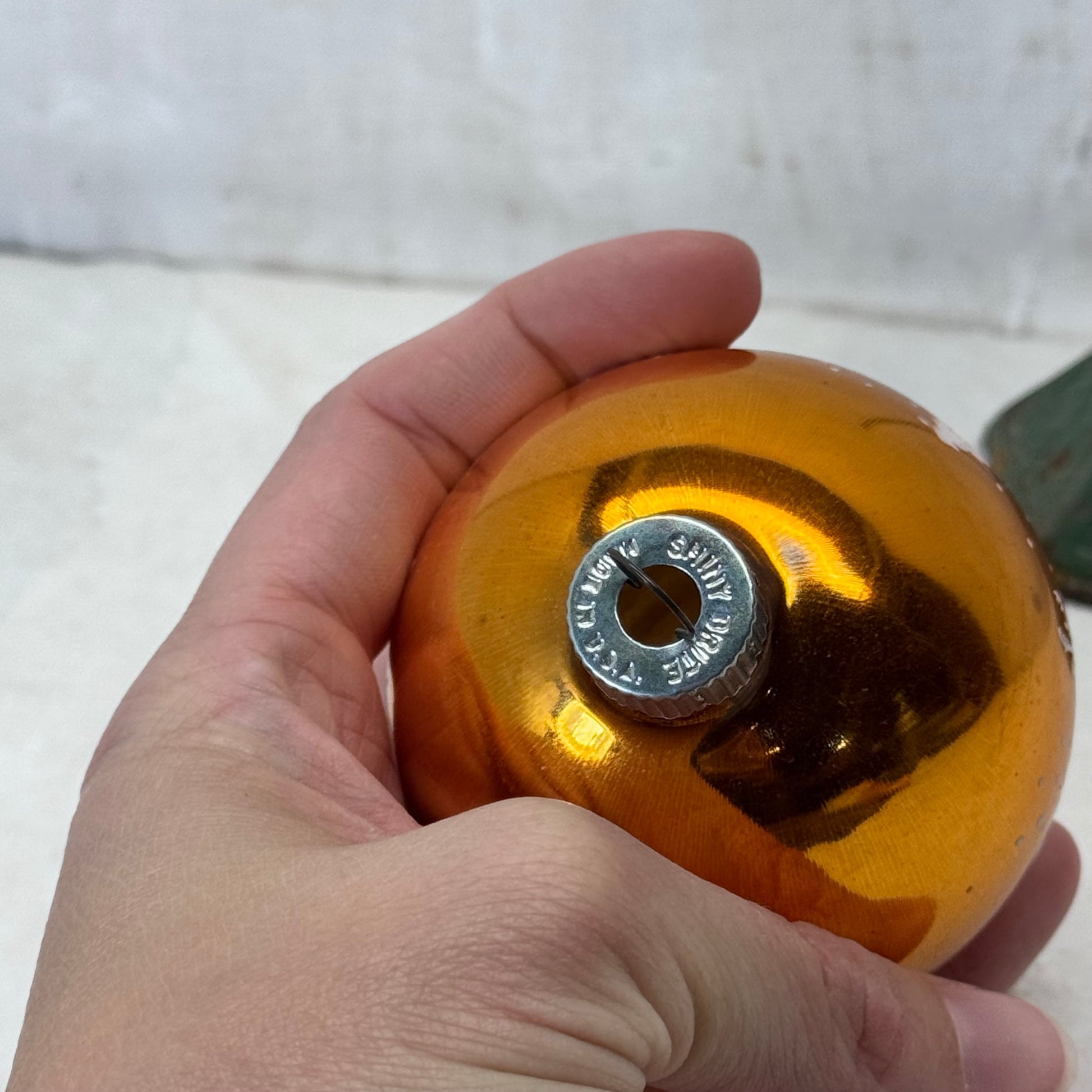 The Stenciled Yellow/Gold Shiny Brite Glass Ornament Vintage is a must-have for any holiday tree. This classic ornament features the shiny brite finish, giving it a beautiful and reflective appearance. Bring a touch of vintage charm to your holiday decor with this timeless piece.