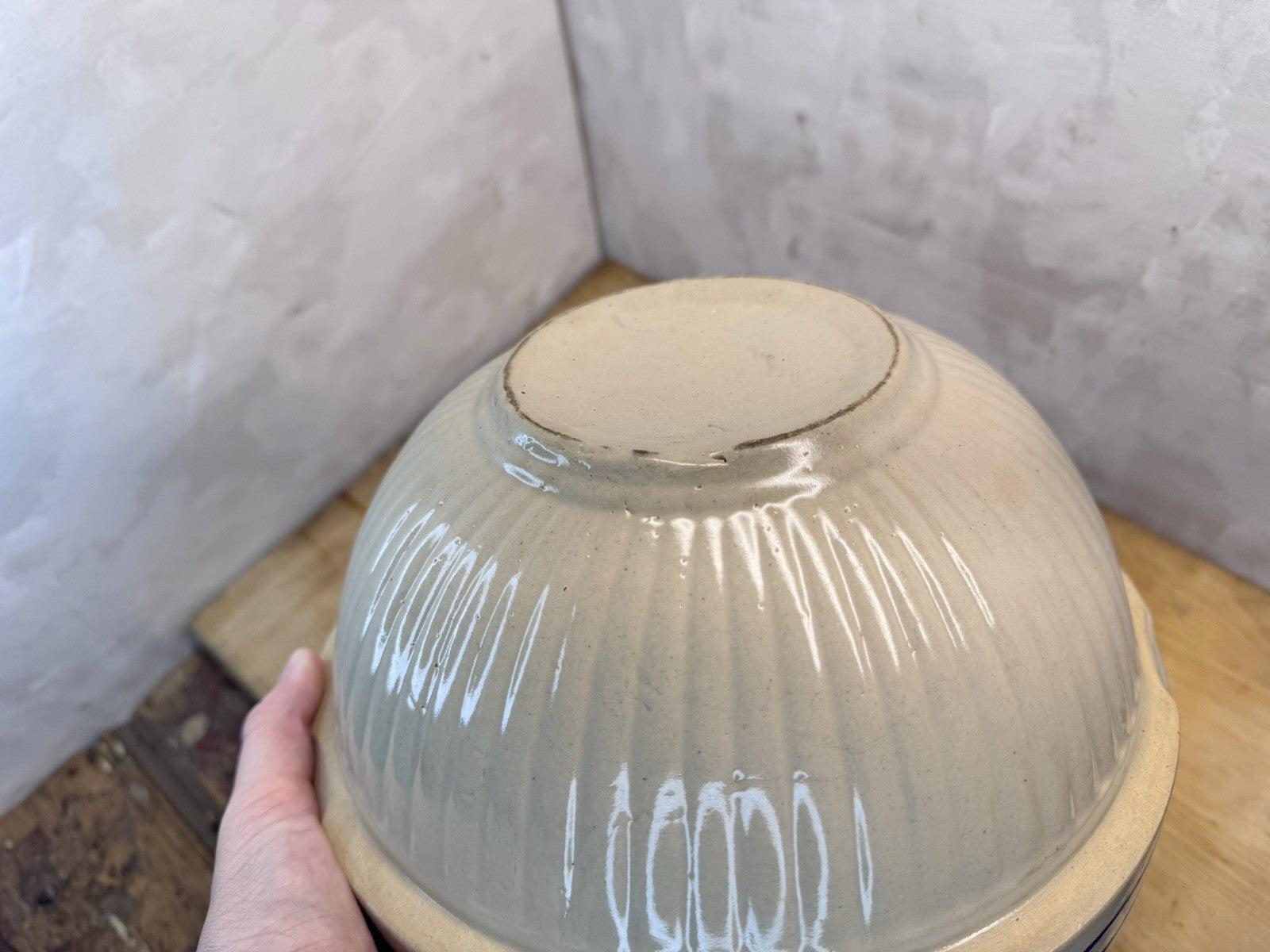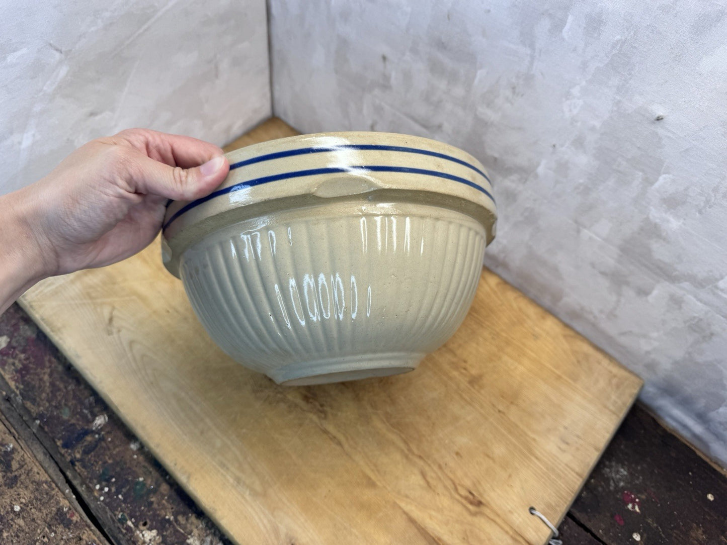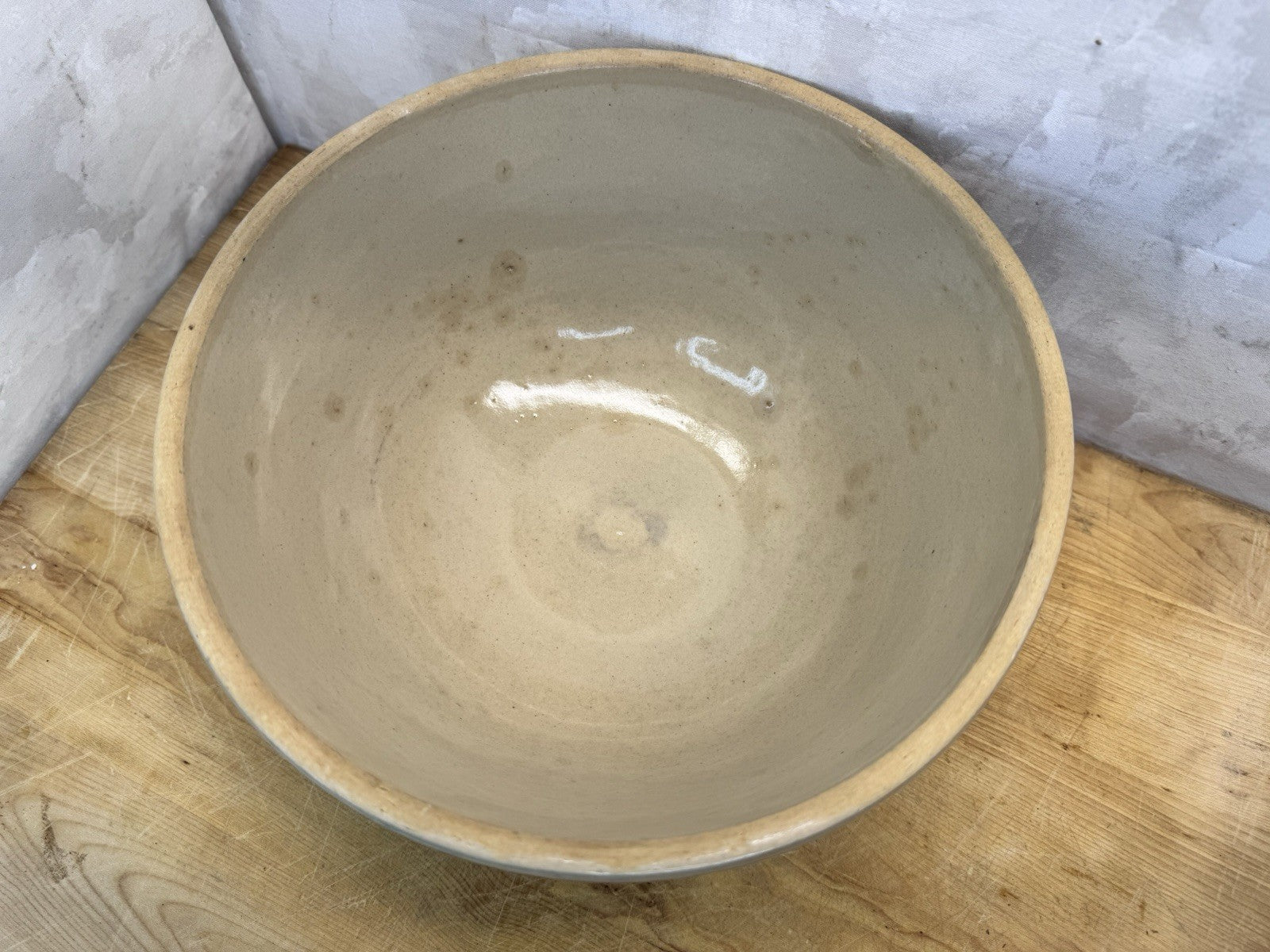 The antique Stoneware Bowl is a collectible piece of dinnerware that exudes vintage charm. Made from durable stoneware, this bowl features a retro design that adds a touch of history to any kitchen or dining room. With its unique style and classic material, this bowl is sure to be a cherished addition to any collection of antique kitchen artifacts. No chips or cracks