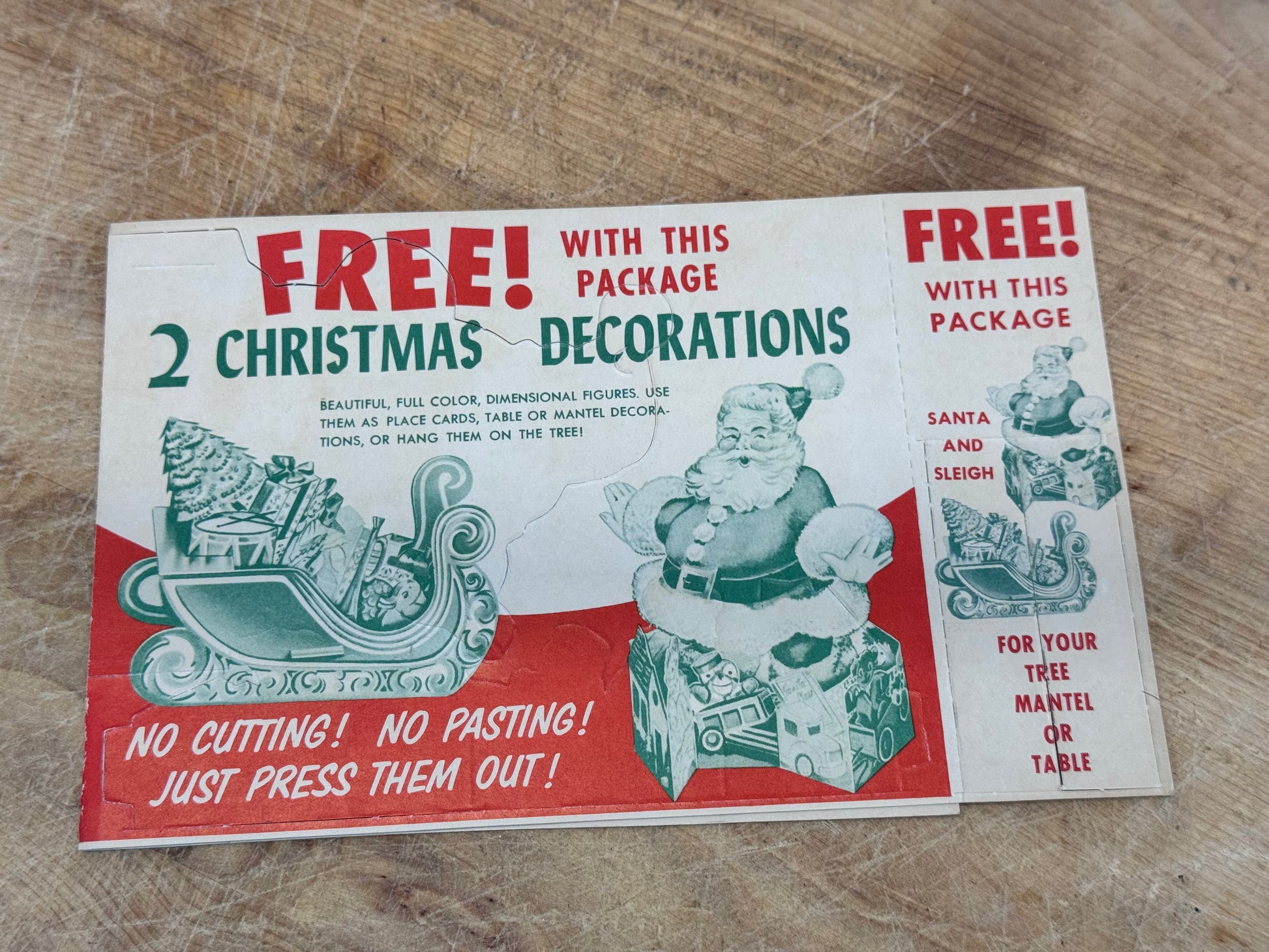 NOS Paper Christmas Cut-Outs Post Cereal Vtg #1629