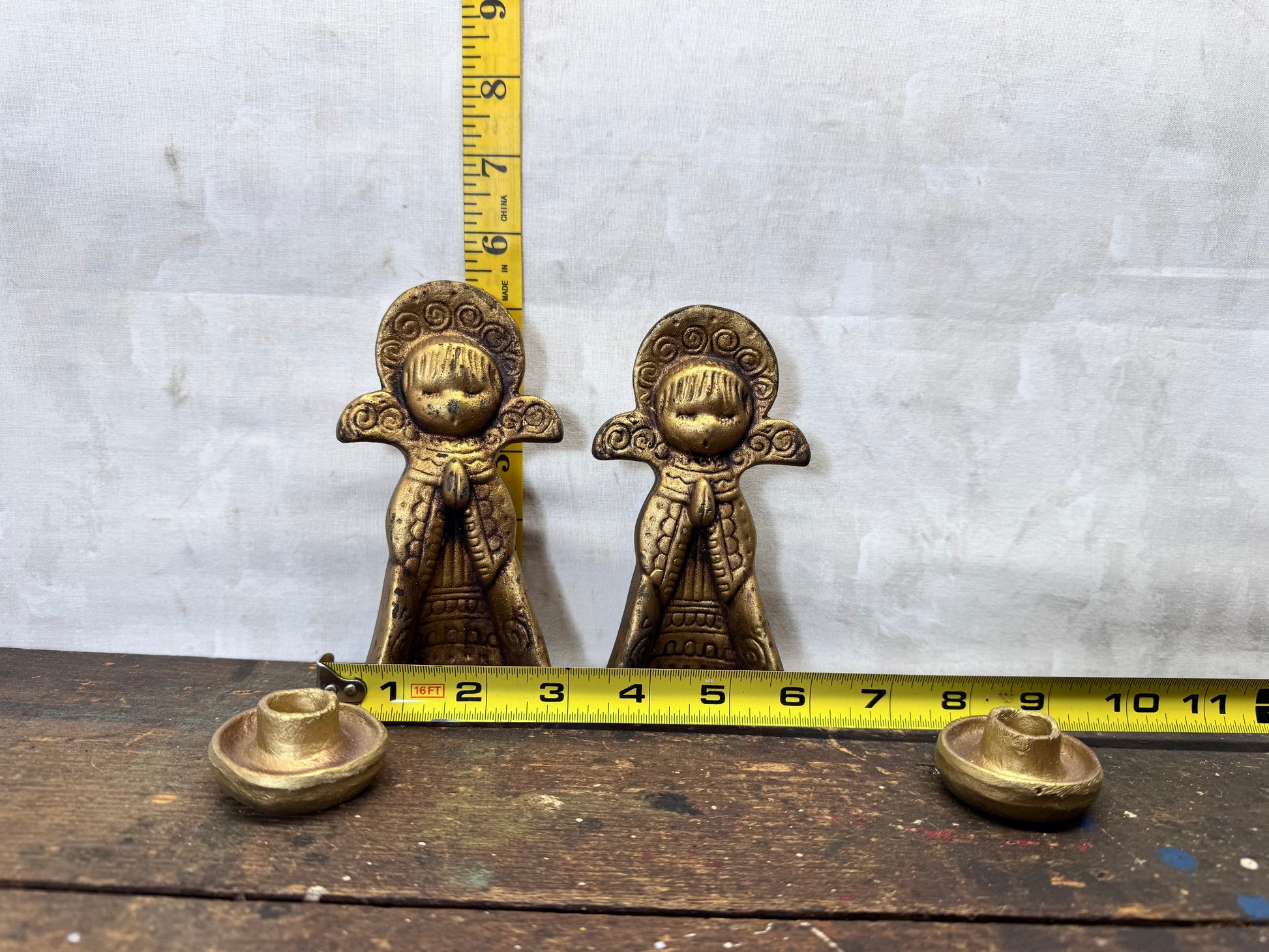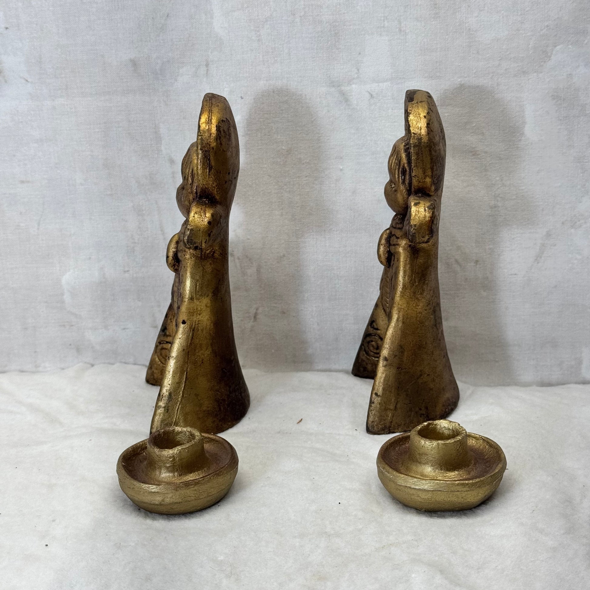 Vintage Ceramic Angel Christmas Candle Holder Gold Italy #2196