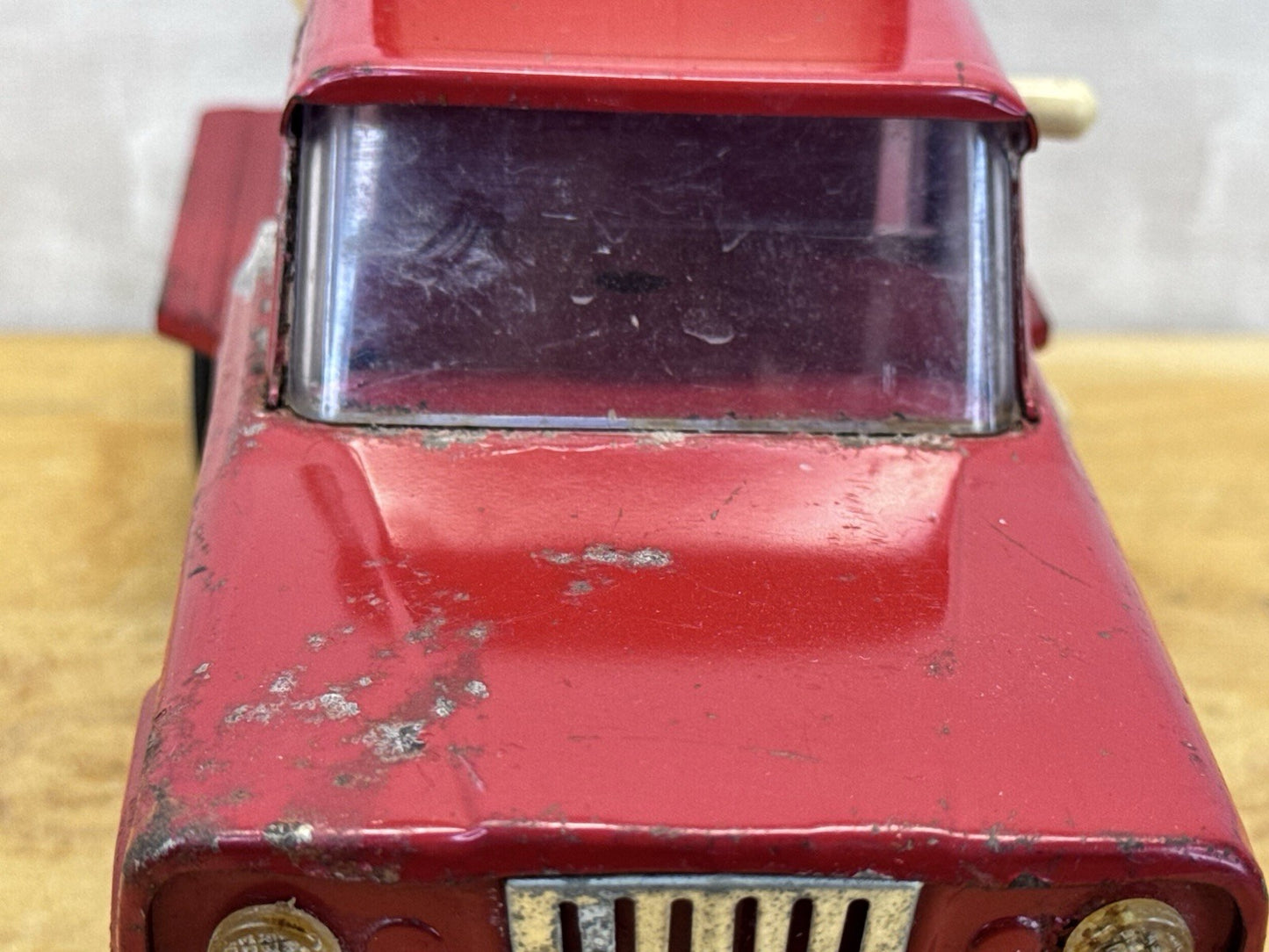 The Vintage 1960s Tonka Cement Truck #1044 is a classic die-cast toy vehicle that represents the iconic brand Tonka. This toy truck, designed in the 1960s, is a collectible piece for vintage toy enthusiasts and collectors. With its sturdy construction and detailed design, this Tonka Cement Truck is sure to bring joy and nostalgia to both children and adult collectors alike.