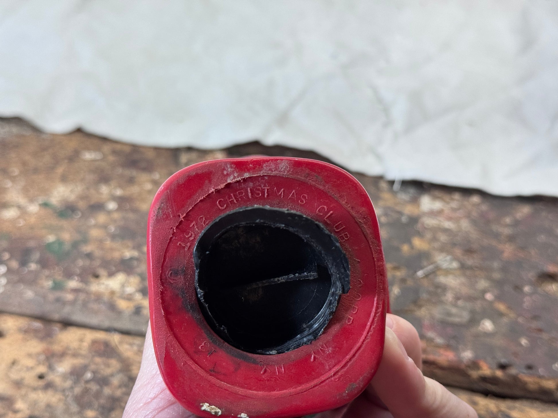 Vintage 1972 Christmas Club Santa Claus Red Rubber Plastic Coins Bank #1748