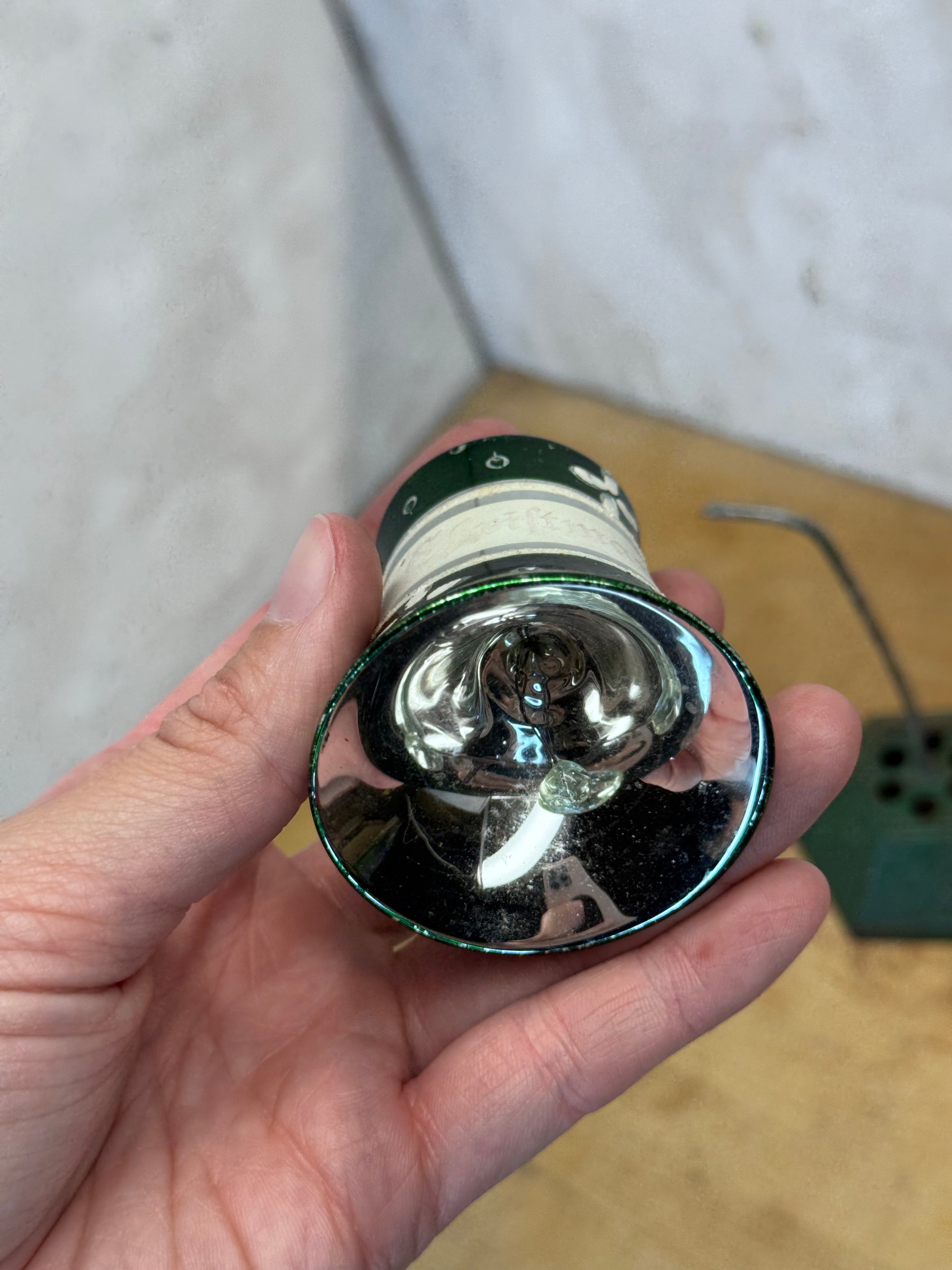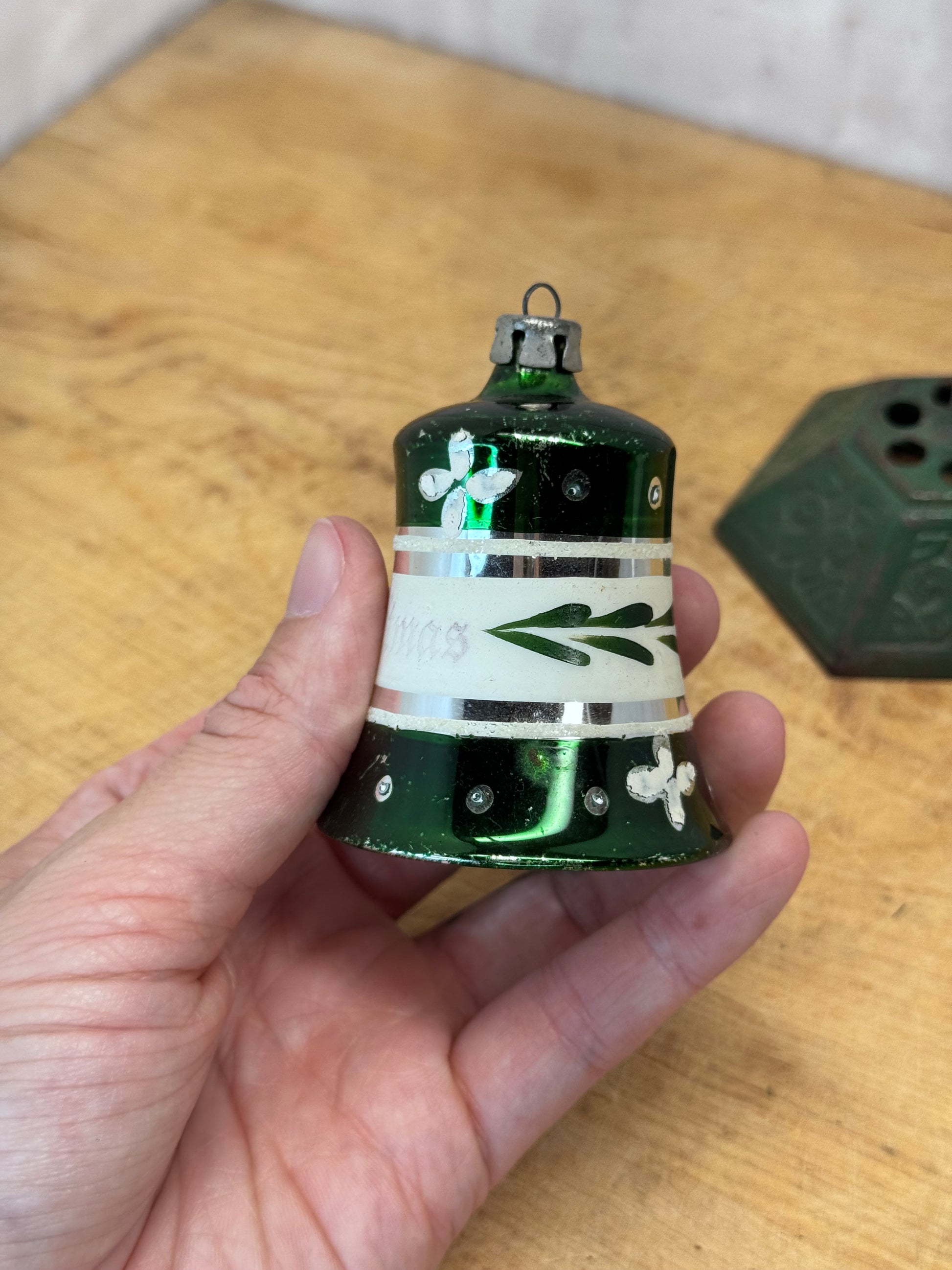 This vintage Christmas bell ornament, featuring a clacker, adds nostalgic charm to your holiday decor. Crafted with attention to detail, the classic design evokes memories of past celebrations. A beautiful addition to any Christmas tree or display, this ornament is sure to bring joy to all.