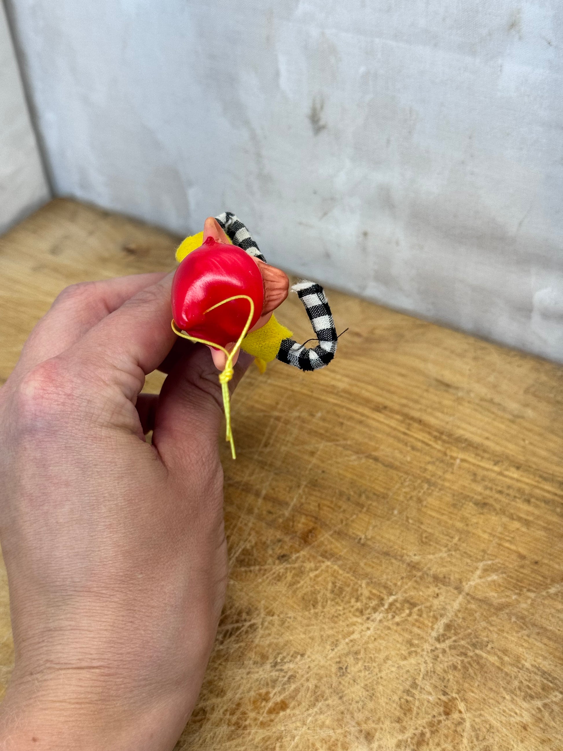 This vintage Christmas ornament features a whimsical Kneehugger Elf Pixie with a black plaid design, perfect for adding a touch of holiday cheer to your decorations. Made in Japan and numbered #1633, this charming ornament will bring a nostalgic feel to your holiday decor.