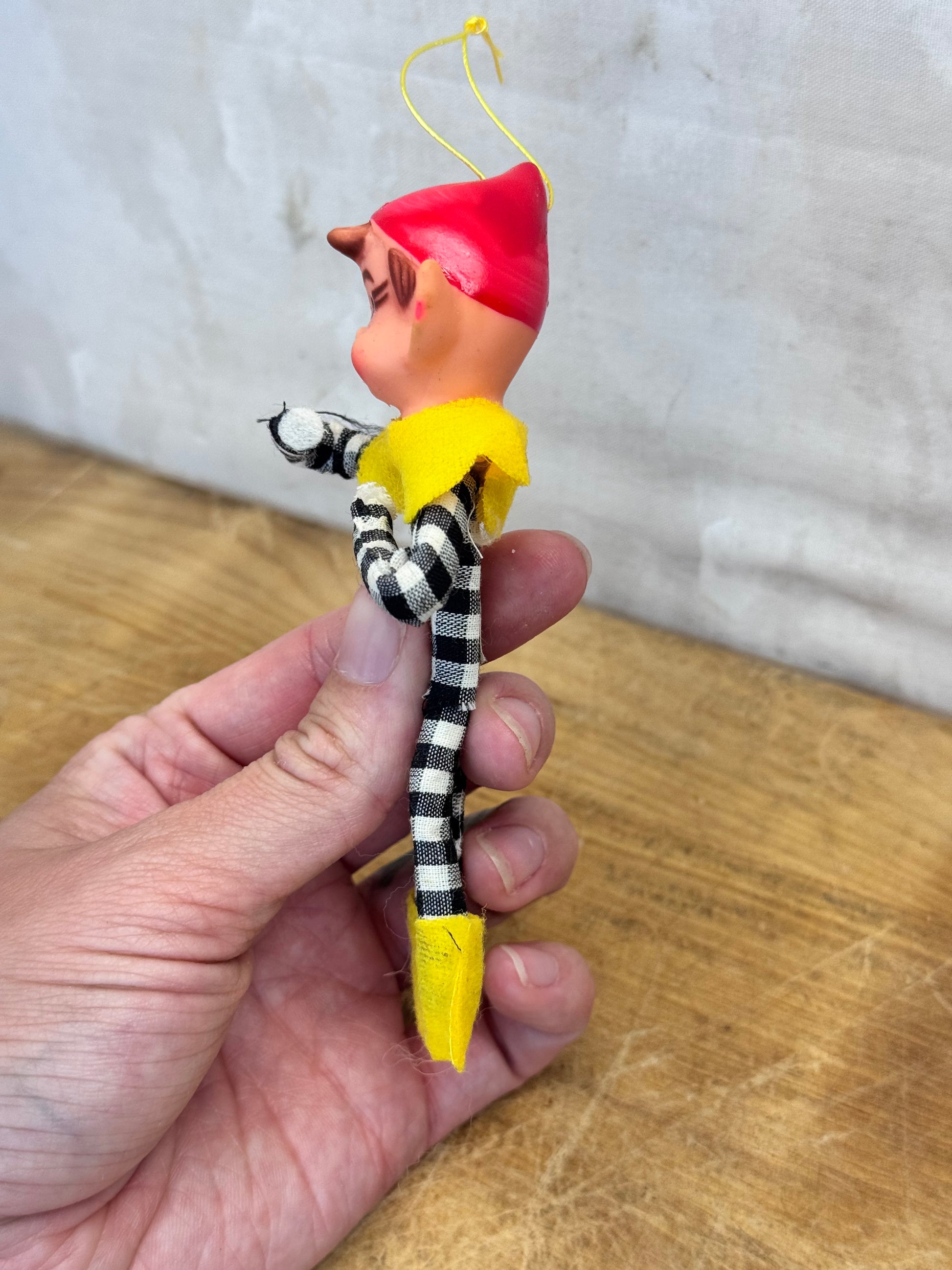 Vintage Christmas Knee Hugger Elf Pixie Black Plaid Japan Ornament #1633