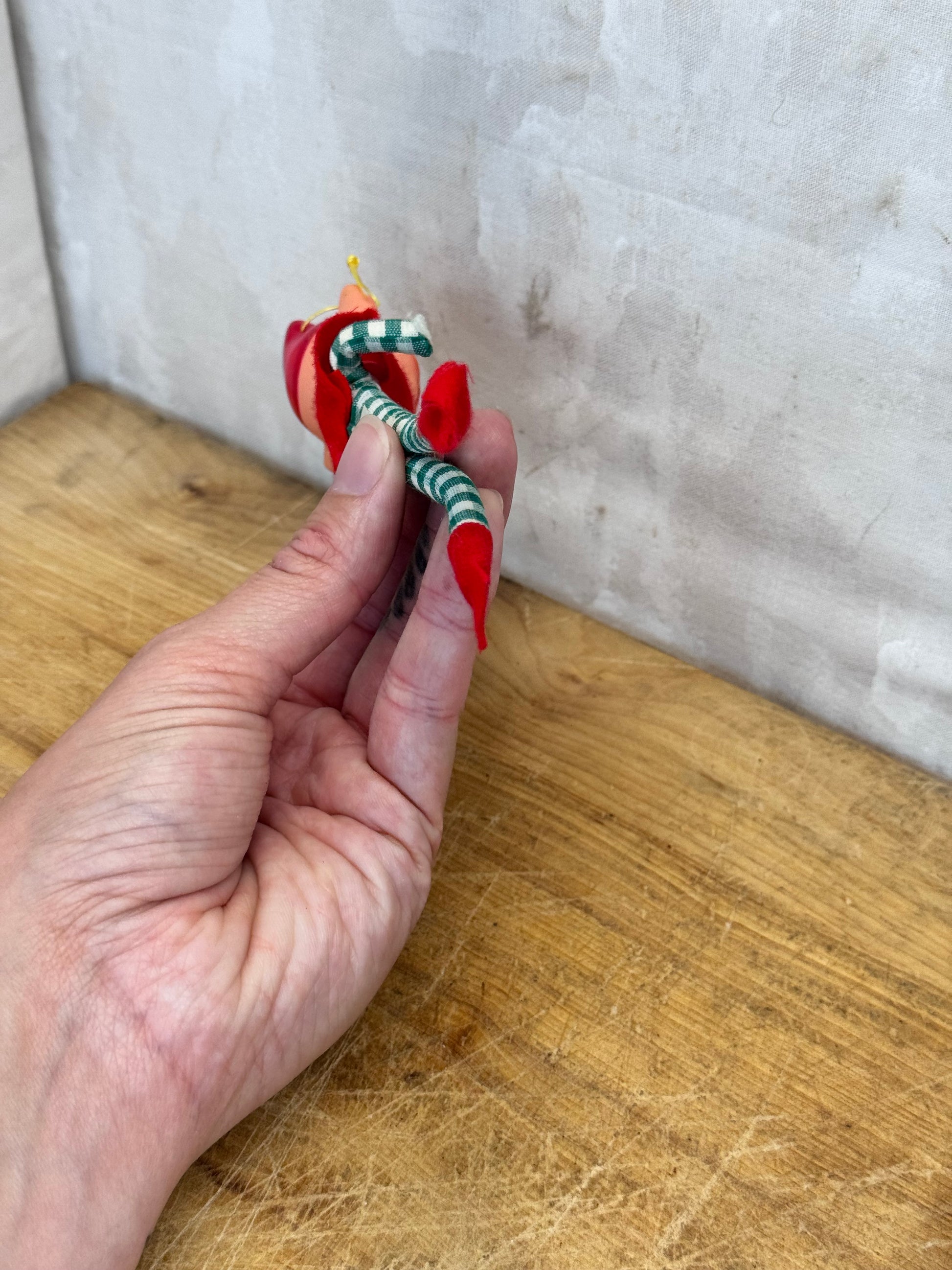 This vintage Christmas knee hugger is sure to add a touch of nostalgia to your holiday decor. Crafted with a lush green plaid design, this elf pixie ornament will bring a classic and festive charm to your home. Perfect for any collector of vintage Christmas items.