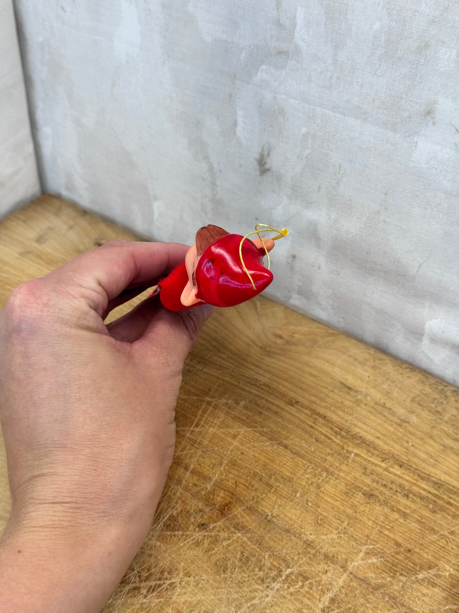Vintage Christmas Knee Hugger Elf Pixie Green Plaid Japan Ornament #1632
