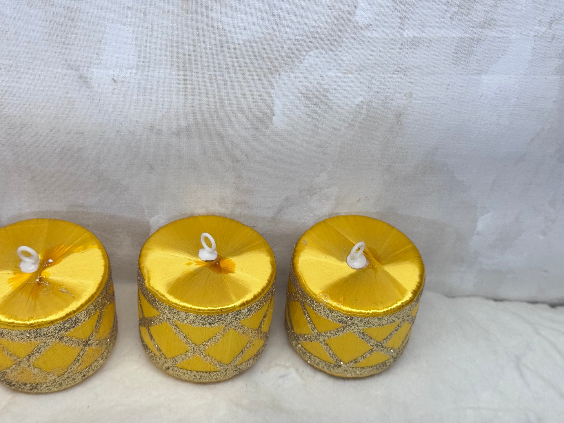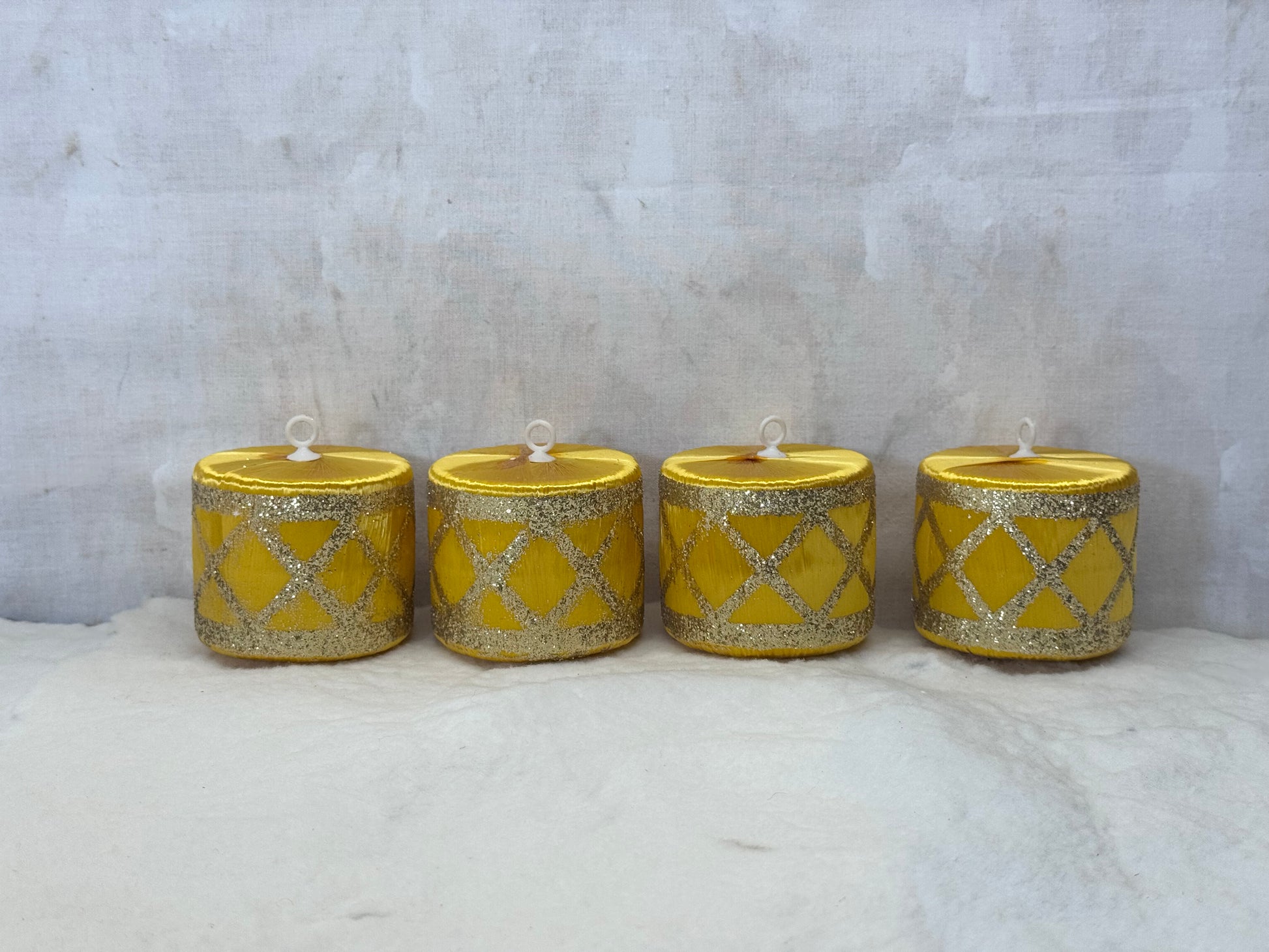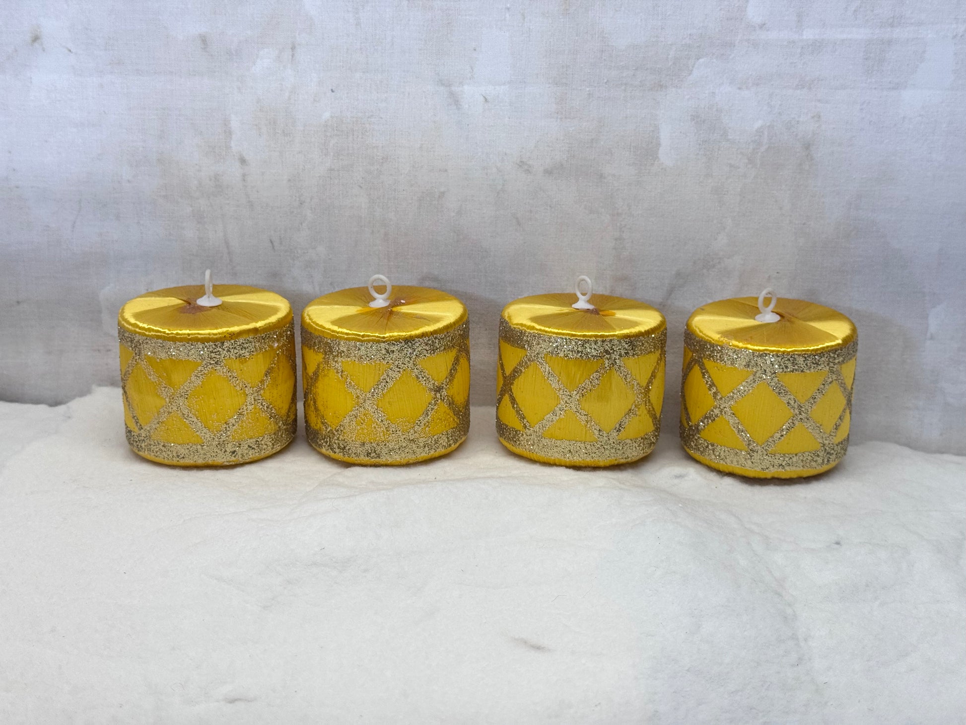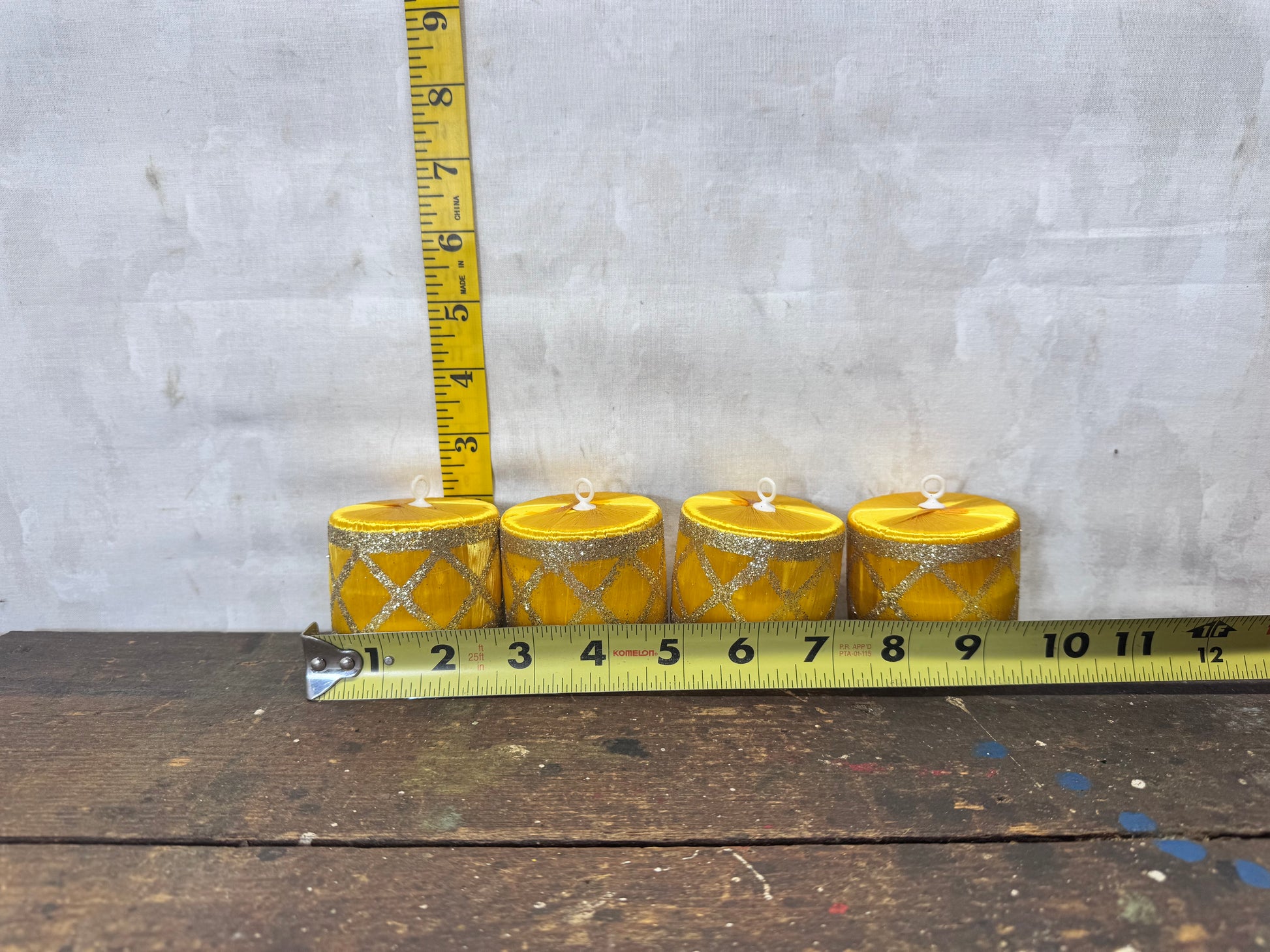 Vintage Christmas Ornaments Gold Drums Satin #1926