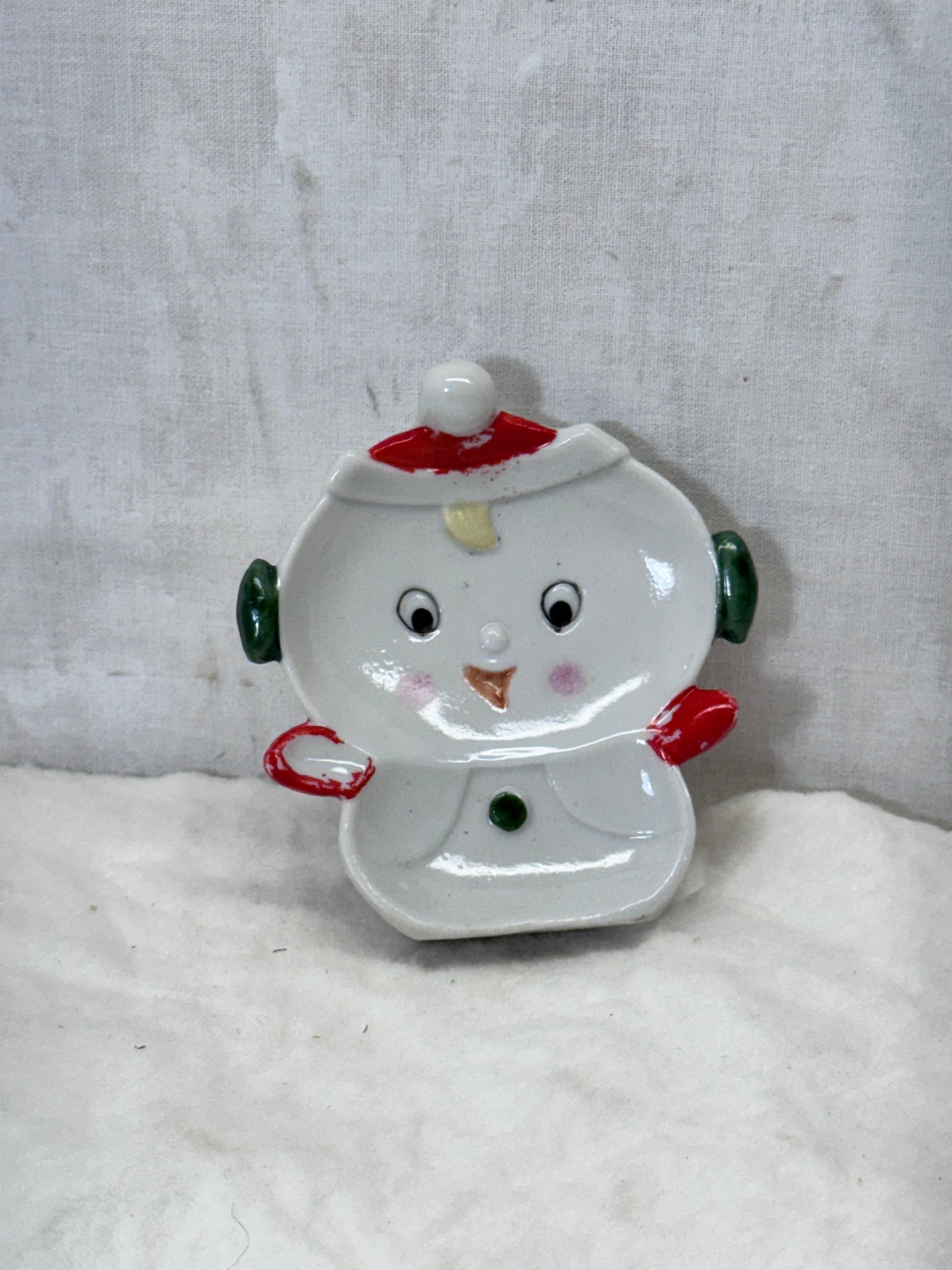 Vintage Japan Christmas Snowman Tea Bag Plate #1784