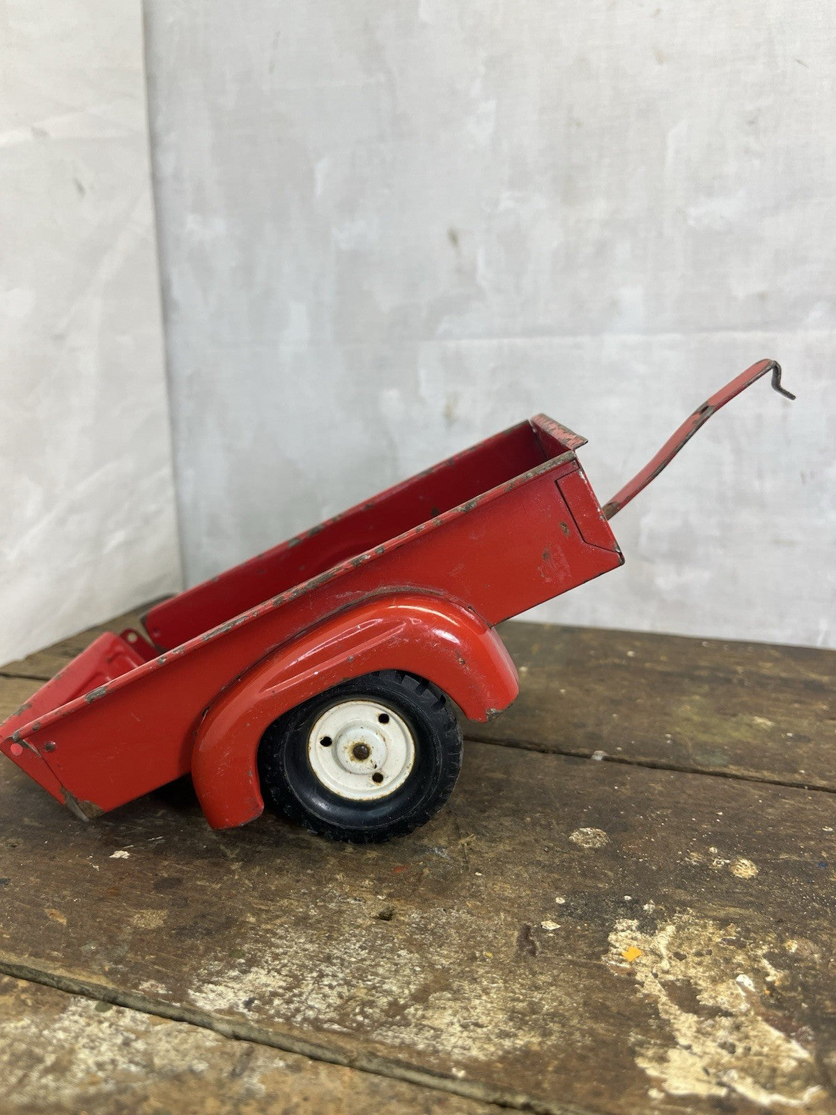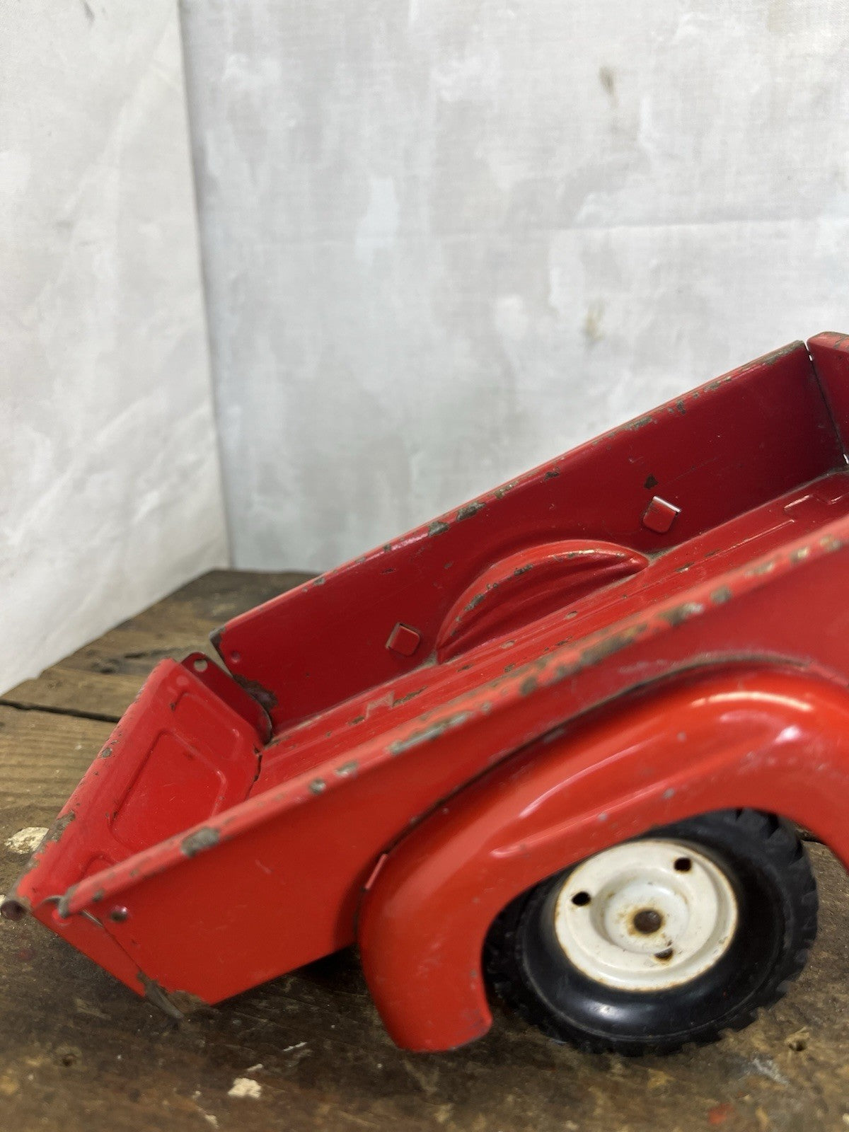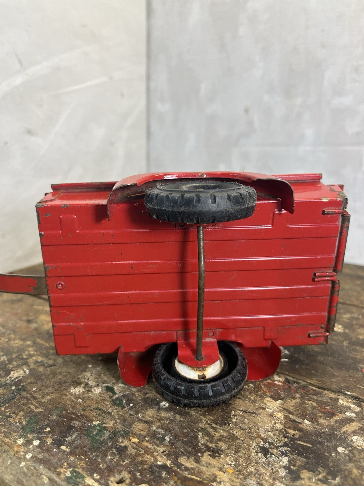 Add a vintage touch to your collection with this classic red Tru-Scale pickup box toy. Made from durable pressed steel, this collectible piece is perfect for display in your man cave or garage. With its vibrant red color and retro design, this trailer is sure to bring back memories of the 1960s. It's a must-have for any diecast or vintage toy vehicle collector. Don't miss out on the chance to own this unique piece of history.