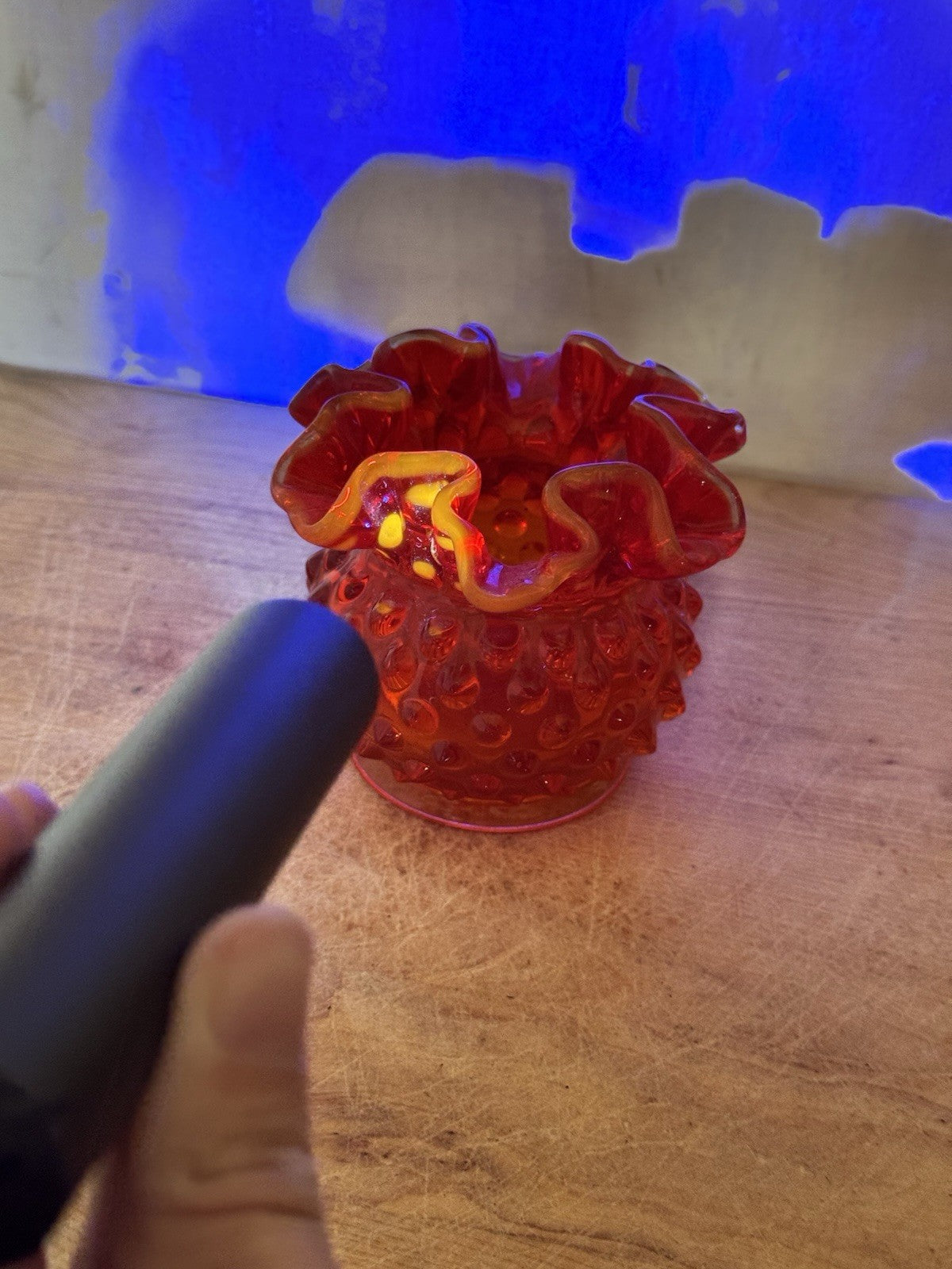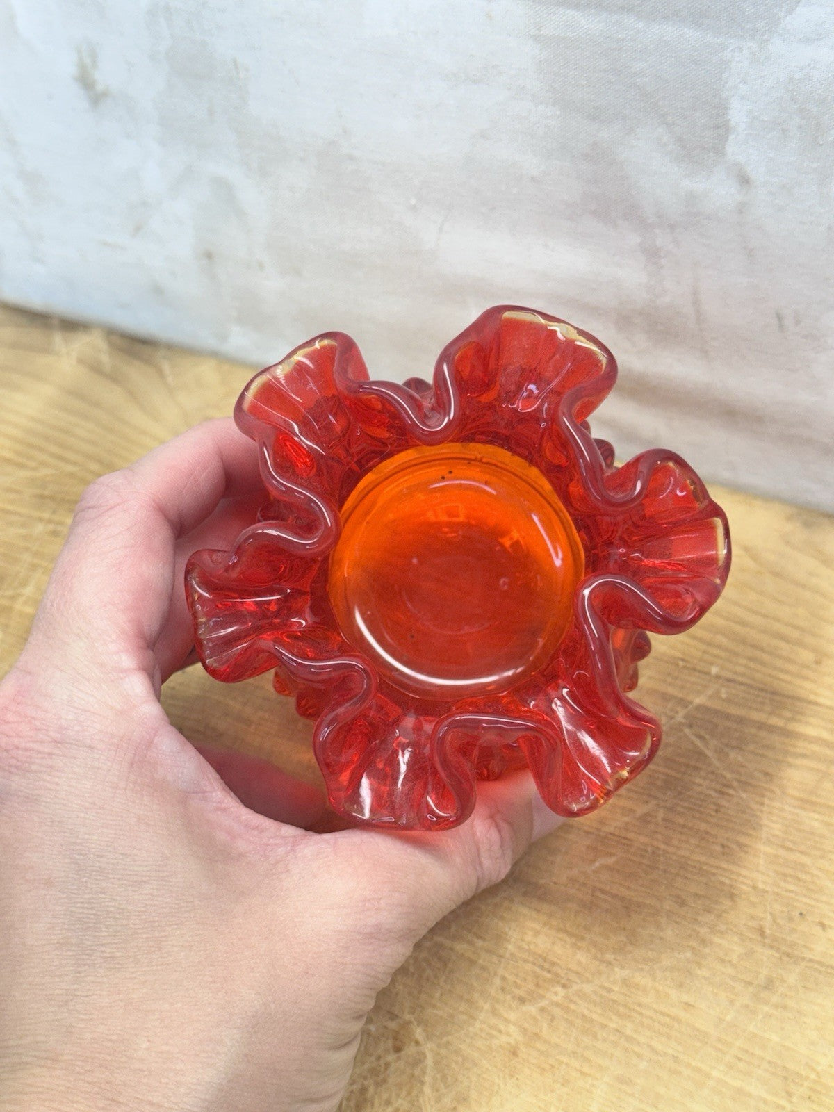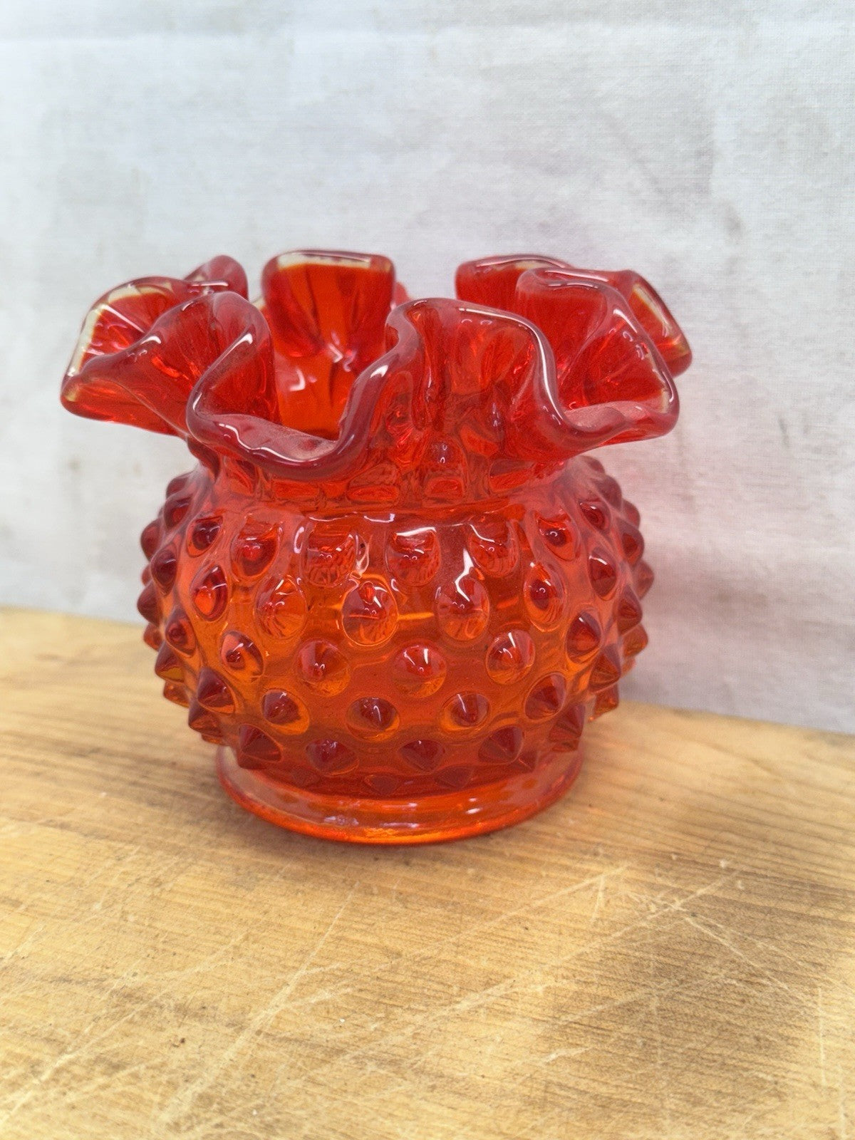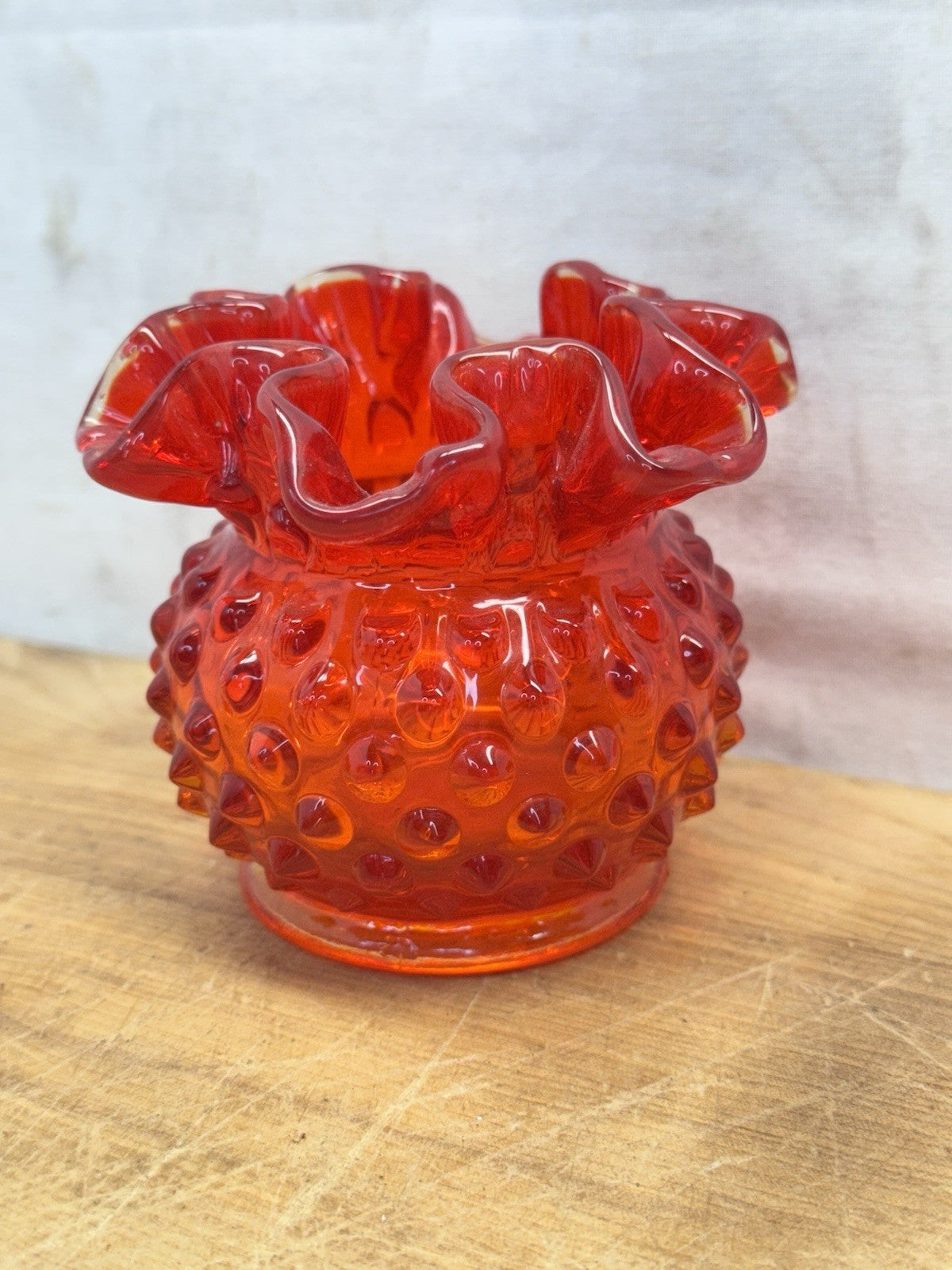 Vintage Fenton Hobnail Amberina Ruffled Bowl #1461