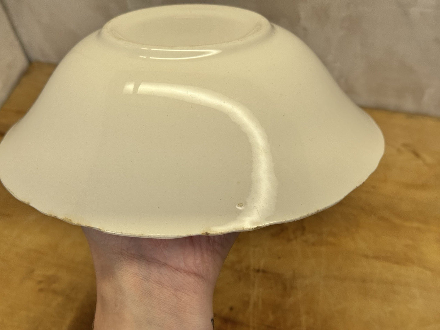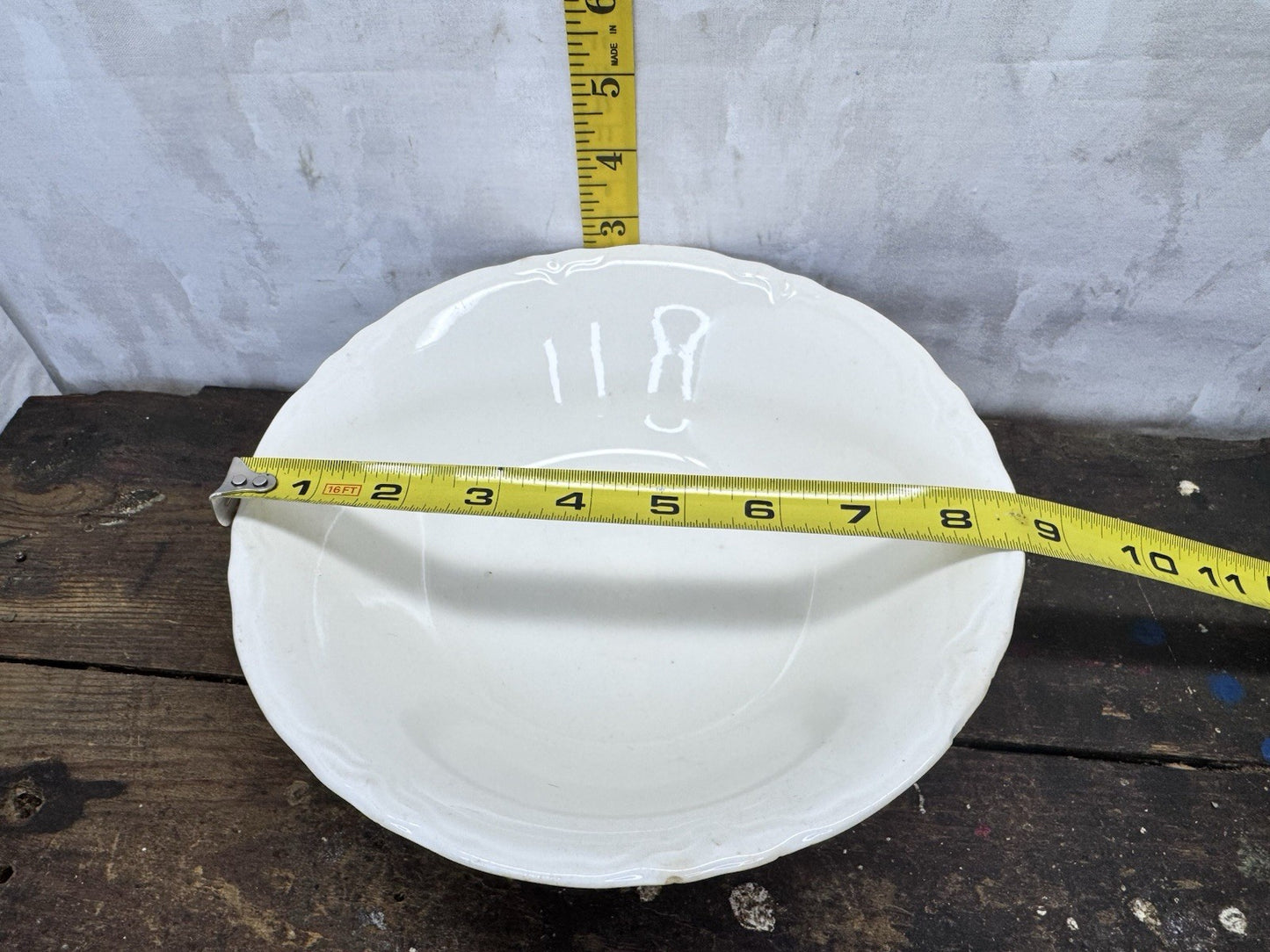 The Vintage Ironstone Bowl is a classic and timeless piece of ceramic serveware. Made by the renowned brand Ironstone, this bowl features a traditional white color and a vintage pattern that adds a touch of elegance to any table setting. With its sturdy construction and classic design, this bowl is perfect for serving salads, side dishes, or even as a decorative piece in a dining room or kitchen. Its timeless appeal makes it a versatile and stylish addition to any home.